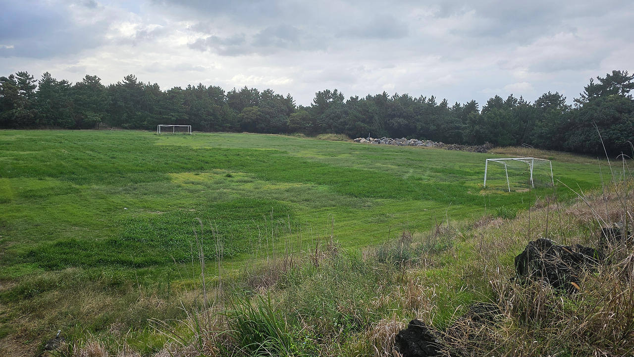 숲길에서 나오면 중간스탬프가 있는 동북리마을운동장을 만난다. 스탬프를 찍고 잠시 앉아 에너지바를 먹으며 운동장을 봤다. 초록의 잔디로 깔려있어야 할 운동장엔 관리를 안 해서인지 잔디는 잡초로 자라 운동장을 가득 메웠다. 축구 골대가 있지만, 축구는 더 이상할 수 없는 곳이었다. 다음 길을 보기 위해 카카오맵의 항공사진을 보니 근처에 새로 만들어진 축구장과 야구장이 있었다. 운동장이 새로 만들어지면서 이곳은 관리를 안 해 버려진 것 같았다. 근처에 있는 화장실에 갔을 때도 그것을 확인할 수 있었다. 화장실은 볼일을 보기에 조금 망설여지게 하는 그런 상태였다. 그러나 화장실이 보이고 어느 정도 느낌이 온다면 그곳에서 생리현상을 해결해야 한다. 올레길의 화장실은 띄엄띄엄 있어 한 번 지나치면 오랜 시간 동안 참아야 하기 때문이다. 그건 곤욕이고 노상 방뇨 같은 작은 윤리적 문제에 봉착할 수도 있다. 여전히 망설여졌지만, 이런 곤란한 상태에 빠지지 않기 위해 들어가 볼일을 봤다.
