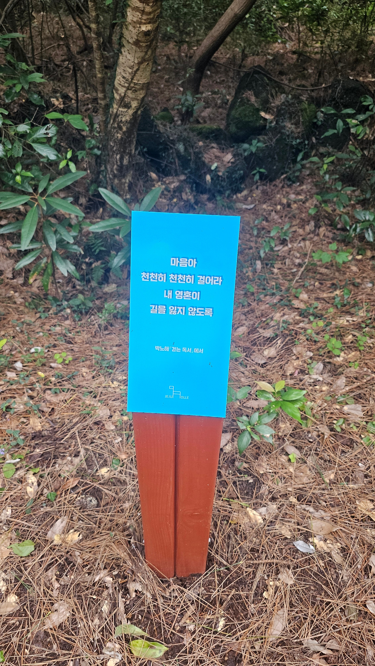 이곳에도 세화와 같이 박노해 시인의 글이 있는 작은 안내판과 풍력 발전기가 있었다. 이번 숲길에서 본 안내판은 13개였다.