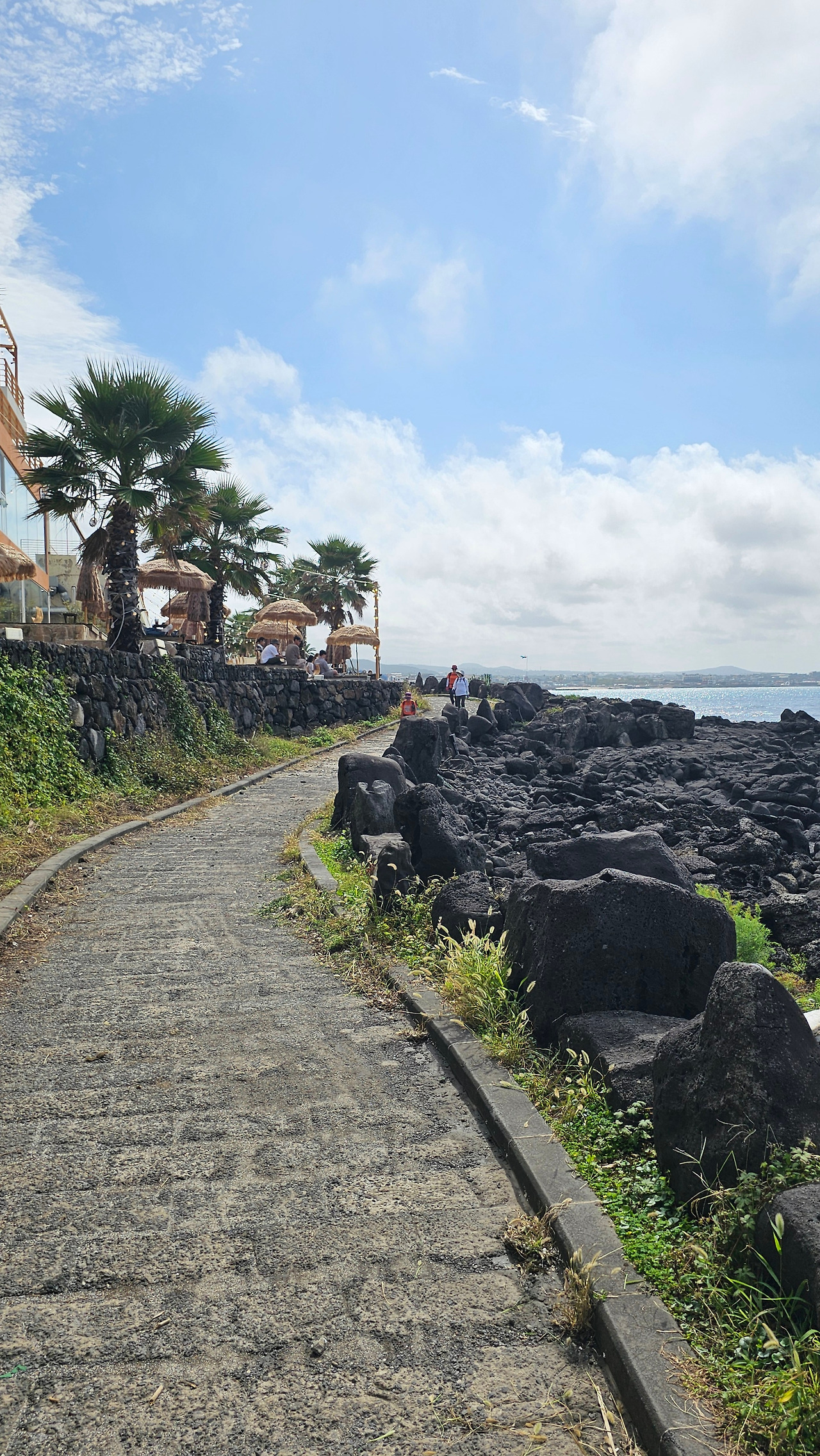 애월카페거리였다. 잘 닦인 현무암 바닥이 한담해안산책로를 지나 곽지해수욕장까지 이어졌다. 카페마다 외부 정원에 파라솔들이 즐비했고 사람들로 북적였다. 사람들은 햇빛도 피할 겸 바다의 풍광을 보기 위해 파라솔에 있는 테이블에 앉아 음료를 마시며 지인들과 대화를 나눴다. 파도가 잔잔히 부서지는 현무암 바위 곳곳에서 어떤 이들은 사진을 찍거나 그냥 바다를 보며 까르르 웃었다. 마치 이곳에 있는 것 자체만으로도 너무도 즐거운 듯. 그들을 보면 절로 미소가 지어지다가도 마음 한편에 둥글게 뭉쳐지는 작은 고독감을 느꼈다. 그건 어쩔 수 없는 일이었다. 그리고 많이 익숙한 것이기도 했다. 카페에서 노래가 흘러나왔다. 그러나 애월중학교에서 들었던 노래와 달리 집중하지 못했다. 이곳에서 울려 퍼지는 노래는 카페를 위한 무형의 인테리어일 뿐이었다. 사람의 마음에 스며들지 못하고 귀로 흘러들다 나왔다. 노래는 이곳에서 본질을 잃었다.