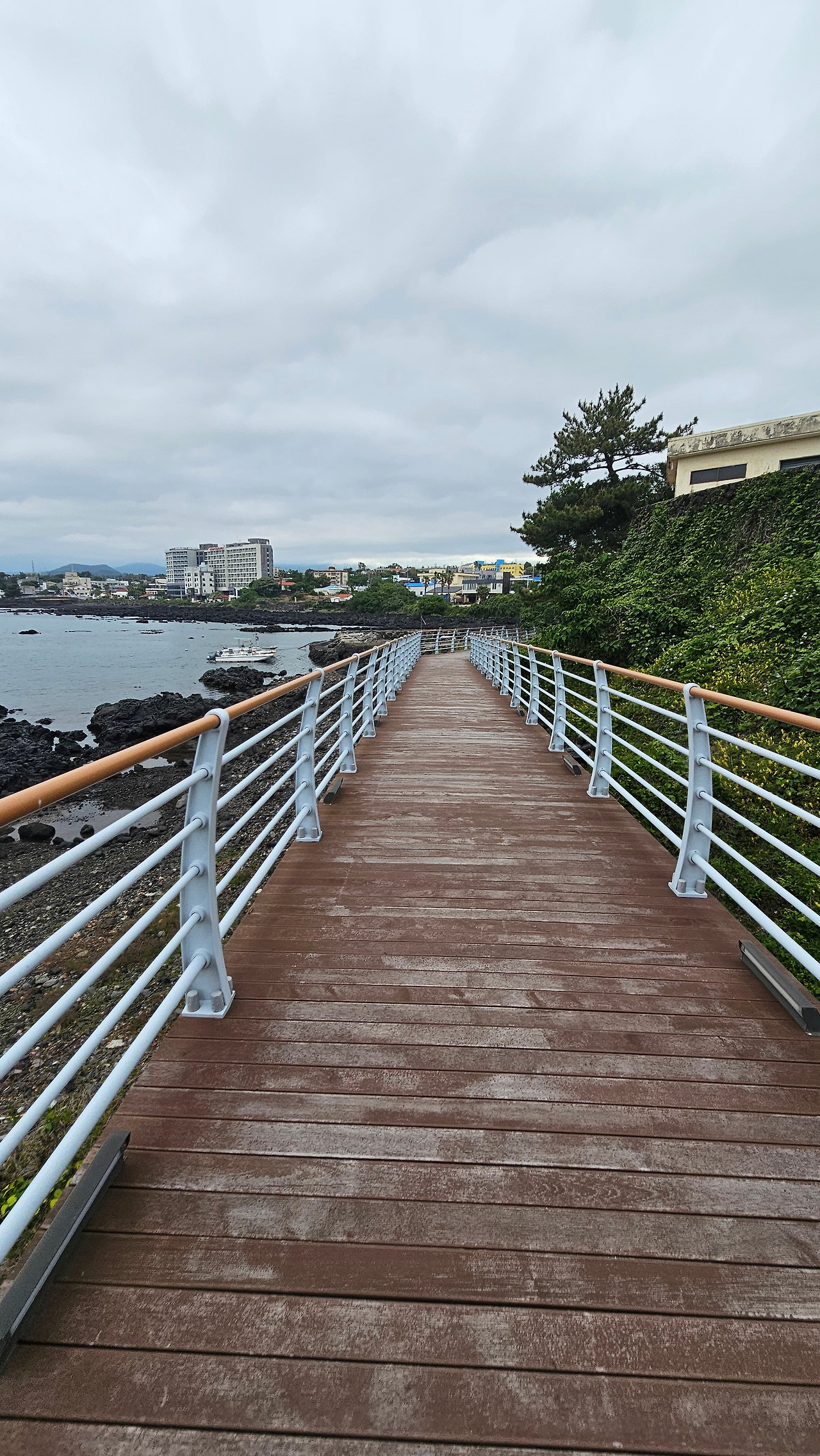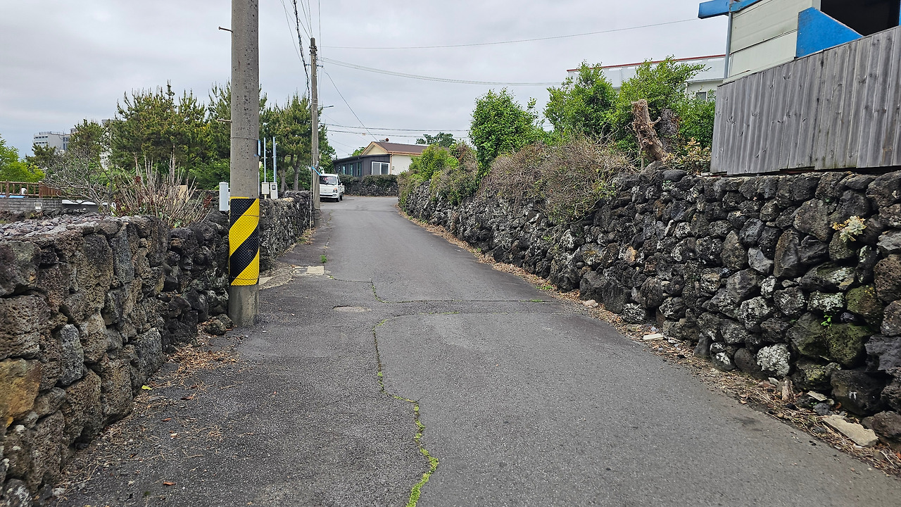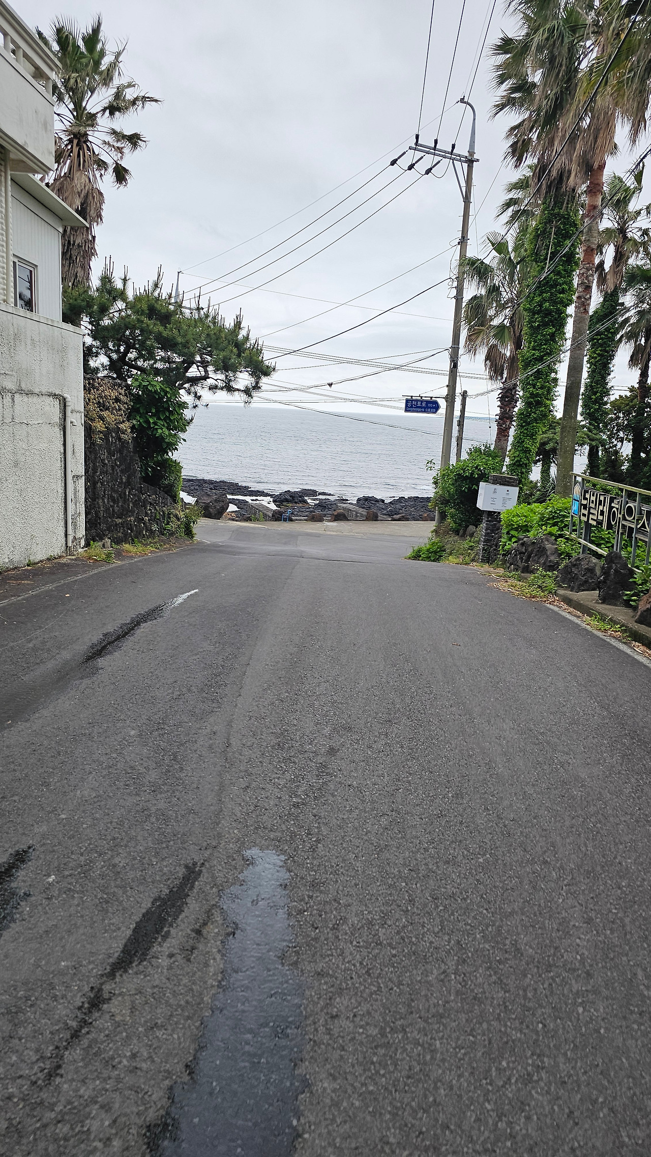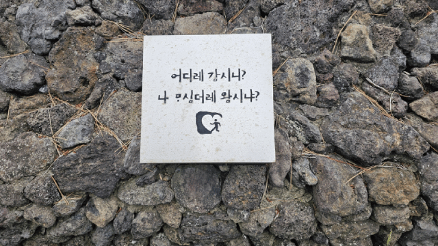 마을의 외곽을 지난 길은 바다에 닿아서 해안도로를 따랐다. 작은 현무암으로 쌓은 가드레일이 쭉 이어졌다. 가드레일에는 짧은 글귀가 쓰여 있는 서른 두 개의 작은 철판들이 일정한 간격으로 붙어있다. 대부분은 사랑에 대한 글이었다. ‘어디레 감시나? 나 마심더레 왐시냐?’로 시작하여 ‘웃당보민 행복헤진데 햄쪄로’로 끝났다. ‘진중진담 나중진땀’에서는 큭큭 웃음이 나왔다. 생각해 보면 위미항에는 하트 모양의 조형물이 있었다. 이곳은 사랑에 대한 글귀로 가득하다. 왜였을까? 이곳에 ‘건축학 개론’의 여주인공인 서연의 집이 있기 때문이었다. 물론 나는 지나쳤지만 기억은 났다. 그곳의 고급스러운 집중 하나였고, 집의 입구에 주차장이 있는데 주차장 입구에 X가 표시된 표지가 있어 다른 차들은 주차 금지인가?라고 생각했던 집이었다. 현재까지 ‘카페 서연의 집’이라는 이름의 카페로 운용되고 있다고 한다. 이 해안 길을 ‘서연의 사랑 길’이라 불러도 되지 않을까?