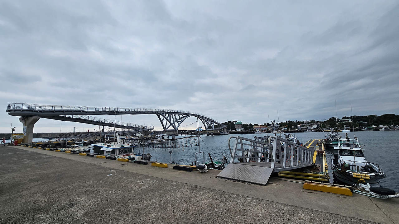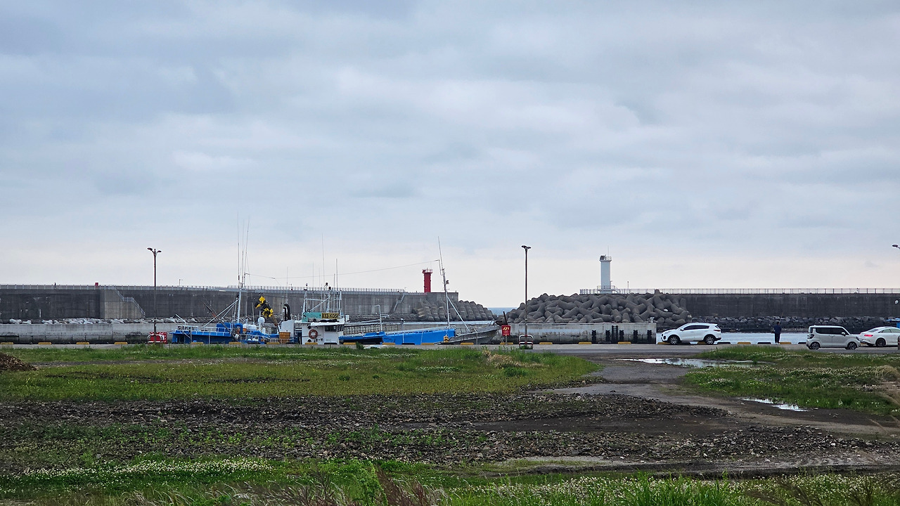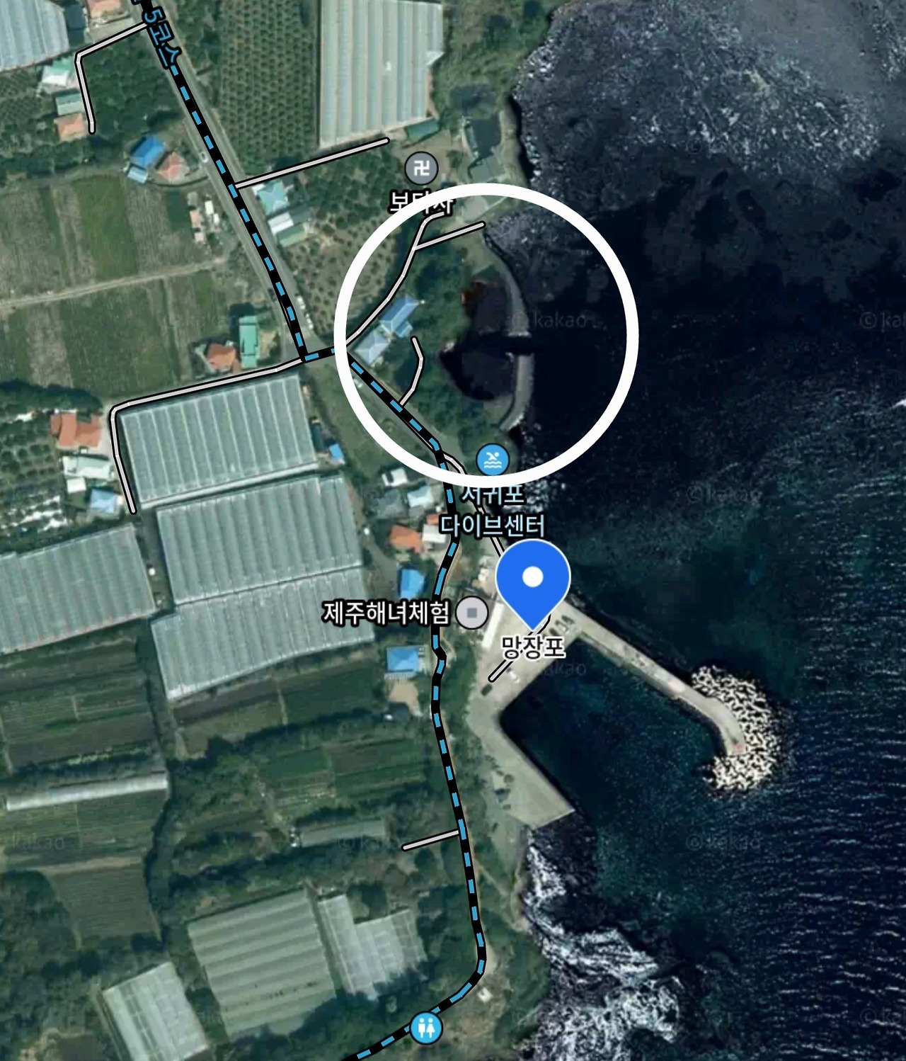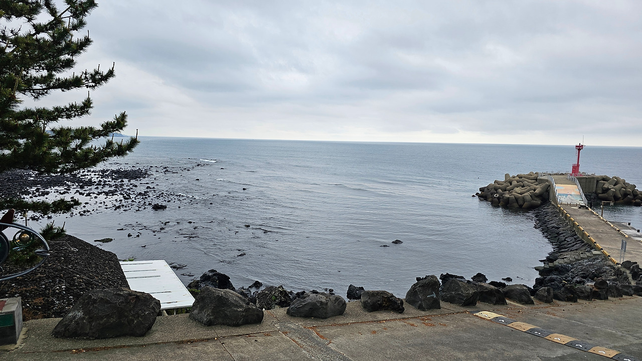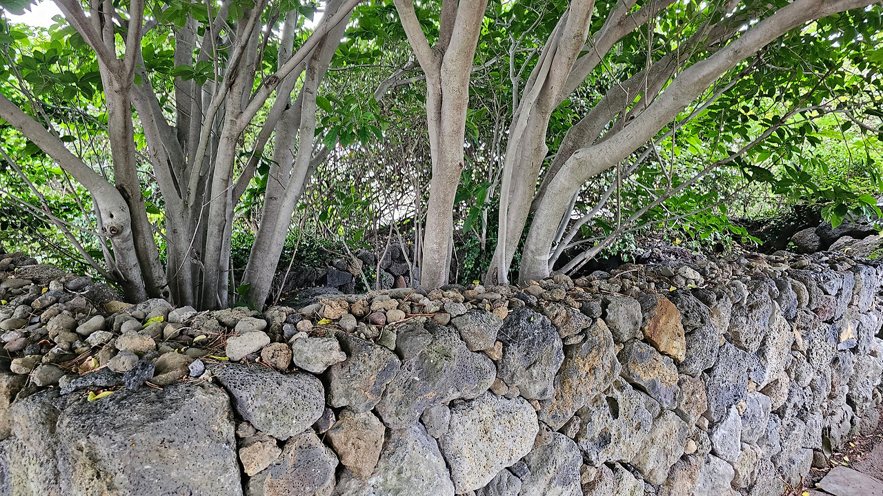조급함으로 인한 빨리 걷기는 무릎의 통증도 유발했다. 오늘 쉬지 않고 걸었던 피로가 누적된 결과지만 하필 빨리 걷고 있을 때 통증이 왔다. 다행히 마을에 약국이 있어 진통제와 파스를 샀다. 이 둘은 올레 내내 함께했다. 사실 위미항은 무척 컸다. 길이 항구 둘레를 돌아서 빠져나는데 다른 곳에 비해 시간이 더 걸렸다. 항구가 큰 만큼 마을도 커서 병원과 약국이 있을 수 있었다. 조급함과 통증 때문인지 경로를 벗어났다. 약국을 지나 다시 위미항으로 내려가 건천을 건너 작은 포구 같은 곳으로 가야 했는데 나는 그냥 도로를 따라가다 위미항이 보이는 곳에서 내려가 포구에 닿았다. 포구에서 조금 더 걸으면 수령이 350년 된 지정 보호수인 해송이 있고 그 맞은편에 마을을 지켜주고 어업을 관장하는 풍농신과 해신을 모시는 위미1리의 본향당이 있다. 본향당의 나무들과 해송이 어우러져 하늘을 가렸다.
