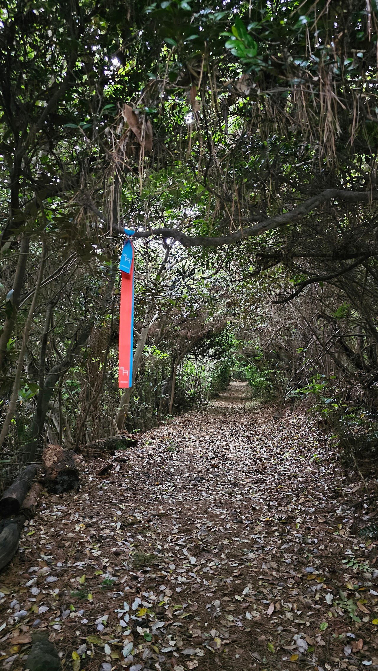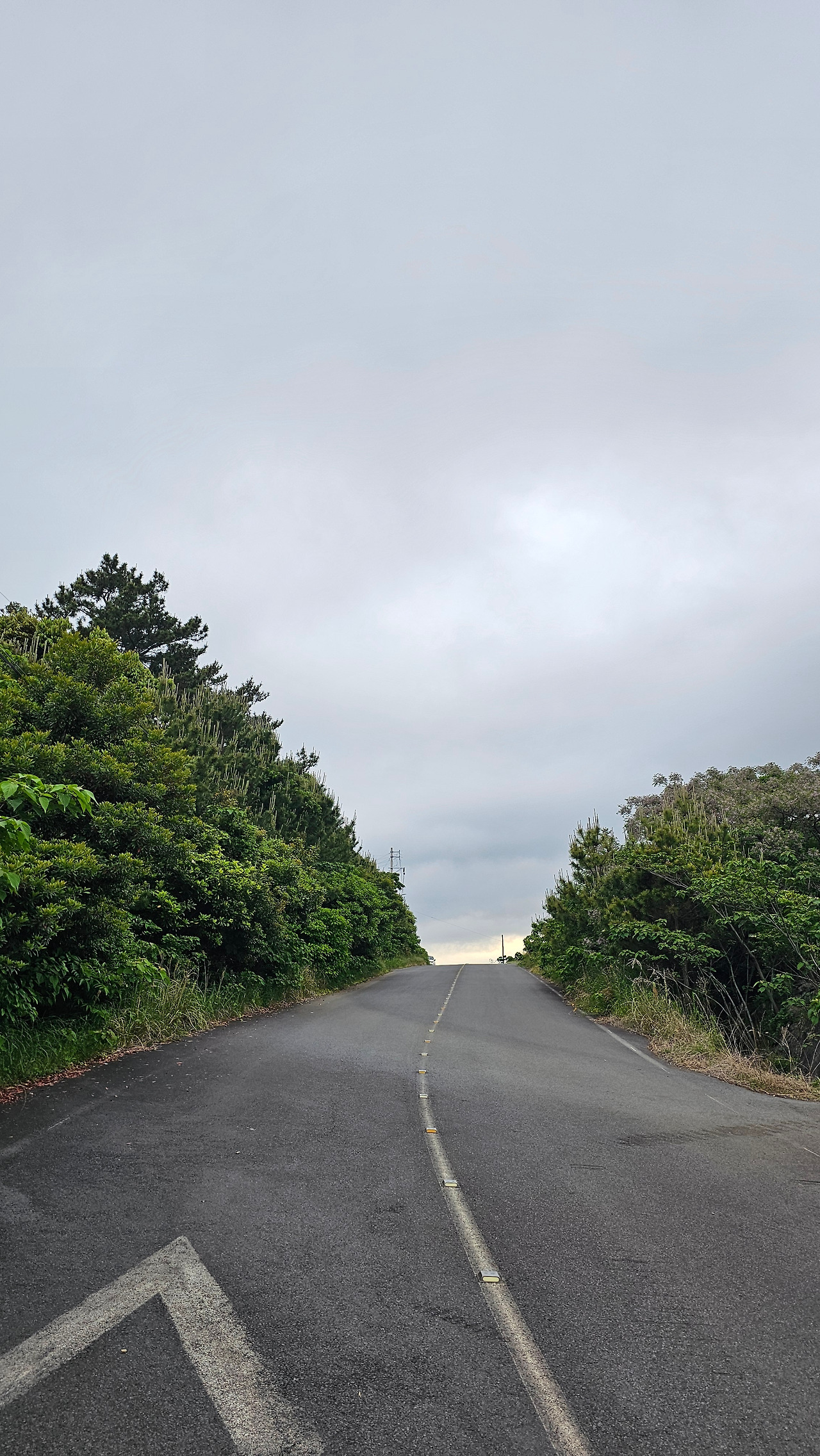 카카오맵은 이야기하고 있었다. 빨리 걸으라고. 도로 길도 있지만 숲길도 있으니 어둠 속에 갇히지 말라고. 바닷가 절벽 가장자리로 난 길이 모퉁이를 도니 나무가 우거진 터널이 나왔다. 터널이 끊어졌다 이어진 사이에 바다를 봤다. 지귀도가 보였다. 숲 터널을 통과하니 간세가 지형이 마치 여우와 닮았다고 해서 호촌봉수라고도 불린, 지금은 감귤원으로 조성되어서 사라진 봉수인 예망촌을 가리켰다. 이어진 길은 주변에 밭인 아주 한적한 도로였다. 감귤밭의 하얀 창고에서 길은 도로를 벗어나 감귤밭 사이의 샛길로 빠졌다. 샛길은 다시 도로와 만났고 양쪽으로 감귤밭이 펼쳐진 도로가 쇠소깍다리를 지나자 종점 간세가 보였다. 5코스가 끝났다. 18시 40분이었다.