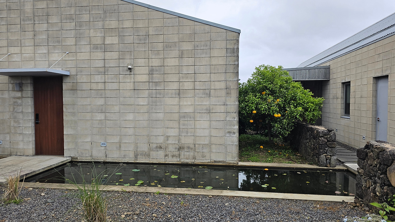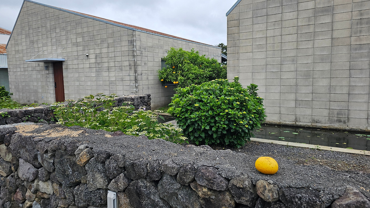 도중에 회색 벽돌로 지은, 고급스럽지만 미니멀한 호텔창고펜션의 빌라 정원에 떨어진 하귤을 봤을 때 맹렬한 허기가 몰려왔다. 낮은 집담에 올려진 하귤을 보고 몰래 집어서 먹을까?라고 생각도 했다. 그러나 하귤은 손으로 까서 먹기가 무척 힘든 과일이다. 하귤은 겉껍질이 단단하고 두툼해 칼집을 내서 벗긴 다음, 씁쓸한 맛이 나는 속껍질도 제거하고, 과육 알갱이를 싸고 있는 껍질을 벗겨서 먹어야 하기 때문이다. 그러면 탱글탱글한 식감과 상큼하게 퍼지는 과즙을 즐길 수 있다고 한다. 일반적으로 감귤은 늦가을부터 겨울까지가 제철인데 하귤은 봄부터 여물어 5월부터 여름까지 제철이라 저렇게 눈에 보인 것이다. 제주에서는 하귤나무를 조경수로도 심었다고 한다. 여름내내 떨어지지 않고 나무에 매달린 싱그러운 모습 때문일 것이다. 칼도 없고 손도 지저분해서 참고 지나쳤다.