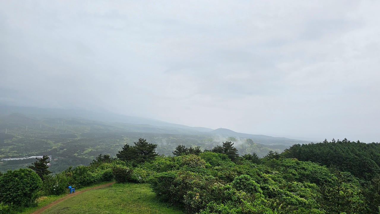 나무로 가려졌던 공간이 열리자, 풀과 키 작은 나무 사이로 길은 오르고 있었다. 마치 길은 작은 언덕을 넘고 있는 것 같았다. 그러나 뒤돌아서자 지금 오르고 있는 곳이 언덕이 아니라 산이라는 것을, 잠시 멈춰 선 곳이 산의 정상 부근이라는 것을 알 수 있었다. 맞은편에 거대한 부드러운 초록 융단이 시야 가득 펼쳐져 있었다. 초록은 밝기도 했고 짙기도 했다. 한라산이었다. 걸음을 빨리했다. 정상에 오르니 산불 감시 초소가 보였다. 좀 더 높은 곳에서 한라산을 보고 싶어 올랐다.