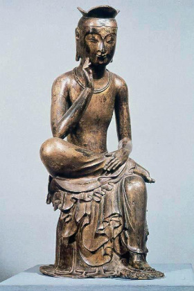 미륵은 불교에서 믿는 여러 부처님들 중 한 분입니다. 우리에게 익숙한 국보 83호 금동 미륵반가사유상과 오늘 글의 커버 사진인 국보 78호 반가사유상도 미륵이시죠. 금산사, 관촉사, 범어사 등의 미륵전이라는 전각은 이 미륵불을 모신 곳입니다.