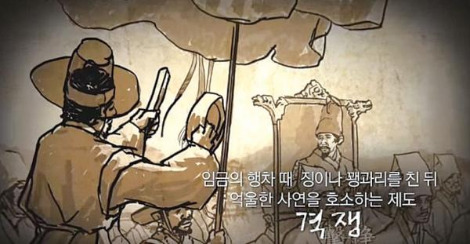 격쟁이란 '징(혹은 꽹과리)을 친다'는 뜻인데, 왕의 행차할 때 징이나 꽹과리를 쳐서 행차를 멈춰세우고 자신의 사연을 왕께 직접 고하는 제도입니다. 이렇듯, 역사적으로 백성의 억울함은 국정의 운영에 매우 중요하고 또 신속하게 처리되어야 하는 사안이었던 것입니다.