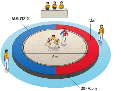상대편을 지름 4.55m의 원형 경기장(도효) 밖으로 밀어내거나 발을 제외한 신체 부위를 땅에 닿게 하는 사람이 이기는 방식인 스모와 대체적으로 비슷한 운동이라 볼 수 있는데요.