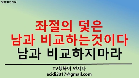 TV를 보며 든 생각은, ‘남들이 우리보다 비교를 덜 한다는 것은 왜 비교하고 있지?’라는 생각이었다. 우리가 비교를 한다 치자, 그건 또 왜 남들과 비교해서 굳이 불행해지는가 말이다.