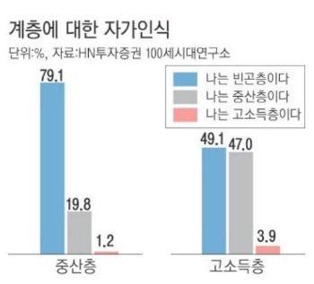 한(恨)의 두 번째 원인으로 꼽히는 상대적 박탈감도 그 기준이 애매하기 짝이 없습니다. 자산이 100억이 있어도 200억인 사람이 있다면 느낄 수 있는 것이 상대적 박탈감이니 말이죠. 한 연구소의 조사에 따르면, 지표상 객관적으로 고소득층(월수익 500만원 이상)인 이들도 절반은 자신이 빈곤층이라고 생각하고 있는 것으로 나타났습니다. 중산층 역시 80% 가까운 사람들이 자신들을 빈곤층으로 인식했죠.