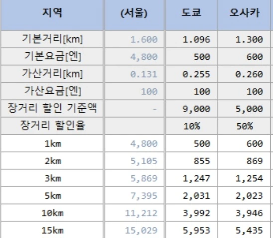 -한국 서울 : 61위 2.76불, (3키로 기준)