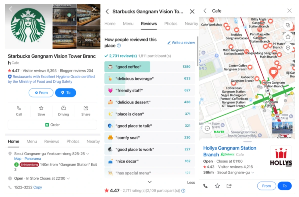 네이버는 다국어 지원 범위를 확장하여 ‘플레이스’ 상세 페이지 내 영업시간 탭, 편의시설 및 서비스, 키워드 리뷰 등을 포함시켰습니다. 하반기에는 텍스트 리뷰와 플레이스 필터도 다국어로 제공할 예정입니다.