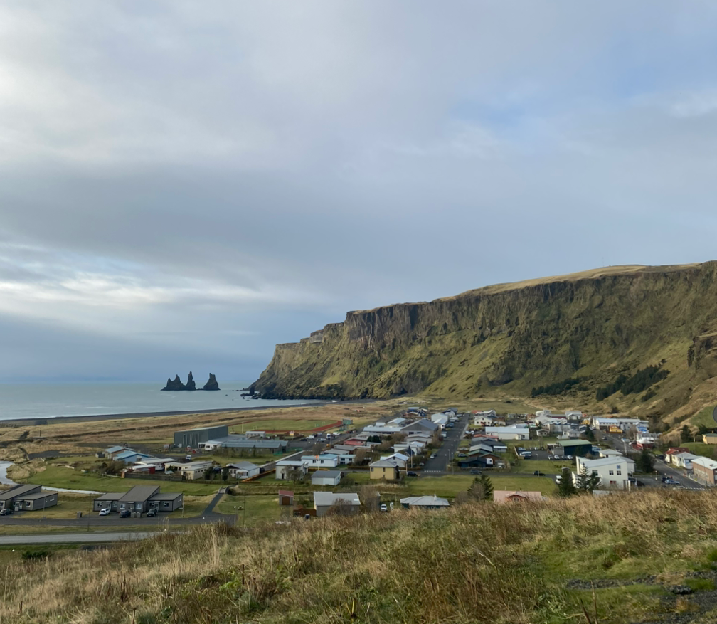 아침 7시에 출발하여 3시간 남짓한 거리에 있는 도시 비크(vik)에 도착하여 커피를 마셨다. 아이슬란드는 남한만 한 땅 크기를 가졌지만 인구는 약 37만 명으로 매우 작아서, 도시라고 하지만 지나는 길에 자동차 한 대를 보기 어려웠고 도시라면 응당 있어야 할 기계소리도 없었다. 커피를 마실 때에도 주변에 휴게소 외에 그저 표지판과 몇 가구의 집들 뿐이었다. 이 마을에는 화산 카틀라(katla)를 연구하는 과학자들이 산다고 했다. (화산과 동명의 넷플릭스 시리즈도 있는데, 화산 폭발 후의 이야기를 담았다고 했다) 아이슬란드에는 여전히 활화산이 존재하고, 2023년 7월 화산이 폭발한 적도 있었다. 장소는 레이캬네스 반도로 아이슬란드 공항과 유명한 관광지인 블루라군이 위치한 곳이다. 수도인 레이캬비크 근처이기도 해서 위험할 것 같지만 정작 아이슬란드 사람들은 화산이 폭발한 뒤 얼마간 흘러내리는 용암을 구경하러 가기도 한다고 했다. 위험에 대해 대비하고 그런 자연현상이 본인들의 삶의 일부가 된 것이다