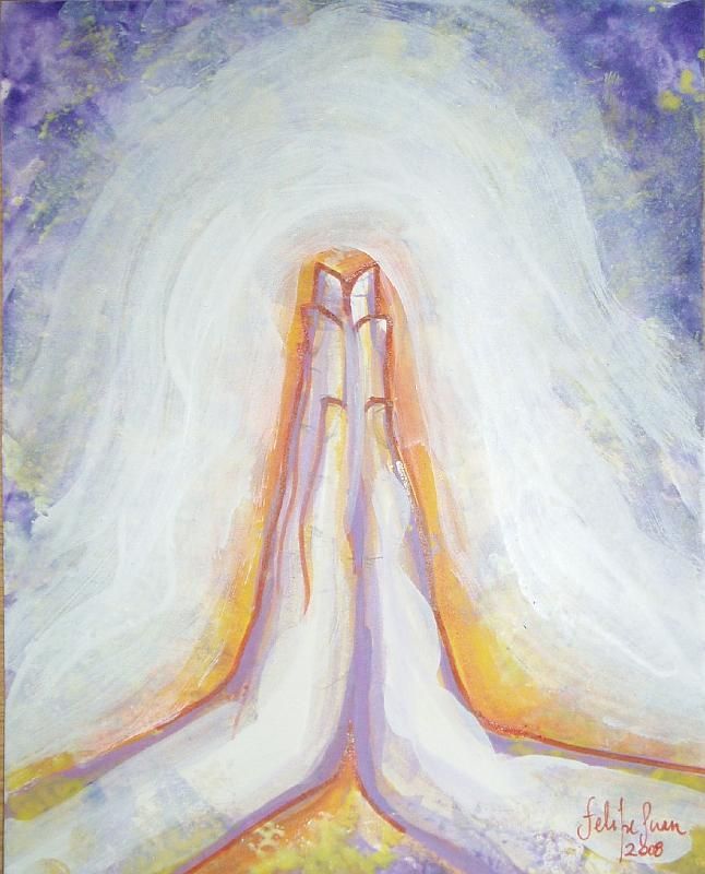 태동의 느낌이 서서히 잦아들며 몸에 힘이 풀렸다. 나는 비라사나 자세로 잠시 휴식을 취했다. 직전 작업의 잔상이 흐릿해지는가 싶더니, 다시 호흡이 빨라지며 새로운 연상이 물밀듯이 밀려왔다. 따스한 에너지가 내 곁에서 나를 내려다보는 듯한 느낌에 이끌려, 고개가 저절로 들렸다. 알 수 없는 영성적 기운이 온몸을 압도했다. 마를 새 없이 또다시 눈물이 두 볼을 타고 연신 흘렀다. 온갖 감정이 뒤섞인 기묘한 표정을 지으며, “이 존재는 대체 무엇이고, 나에게 어떤 의미일까?”라고 질문하며 그 상태를 느꼈다. 그러다 문득 깨달았다. 그는 나를 지키는 수호천사이면서 동시에 나 자신이었다는 것을. 늘 곁에 함께했던 그 존재였다. 수호천사임을 확신할 수 있었던 건, 평소 느껴오던 익숙한 에너지와 너무나 닮아 있었기 때문이다.