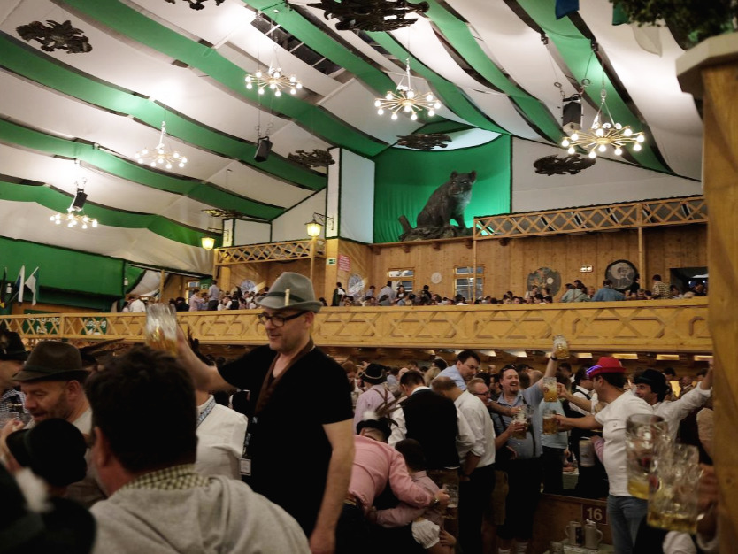 확실히 축제에 대해 잘 알고 있는 현지인들이 많은 텐트여서 그런지, 하커프쇼르 텐트는 옥토버페스트에서 가본 네 곳의 텐트 중 가장 활기 넘치고 들썩들썩했다. 밴드가 음악을 연주할 때 어떤 이들은 의자 위에 올라가 흥청망청 놀았다. 그러다 음악이 끝나면 언제 그렇게 놀았냐는 듯 의자에서 내려와 쉬었다. 그러면 그 잠잠해진 틈을 타 맥주 1리터 원샷에 도전하는 사람들이 하나둘씩 나타났다. 도전자는 의자 위에 올라가 1리터짜리 술잔을 들어 보인 뒤 원샷을 했고 그가 성공하면 지켜보고 있던 사람들은 박수와 환호성을 보냈다.