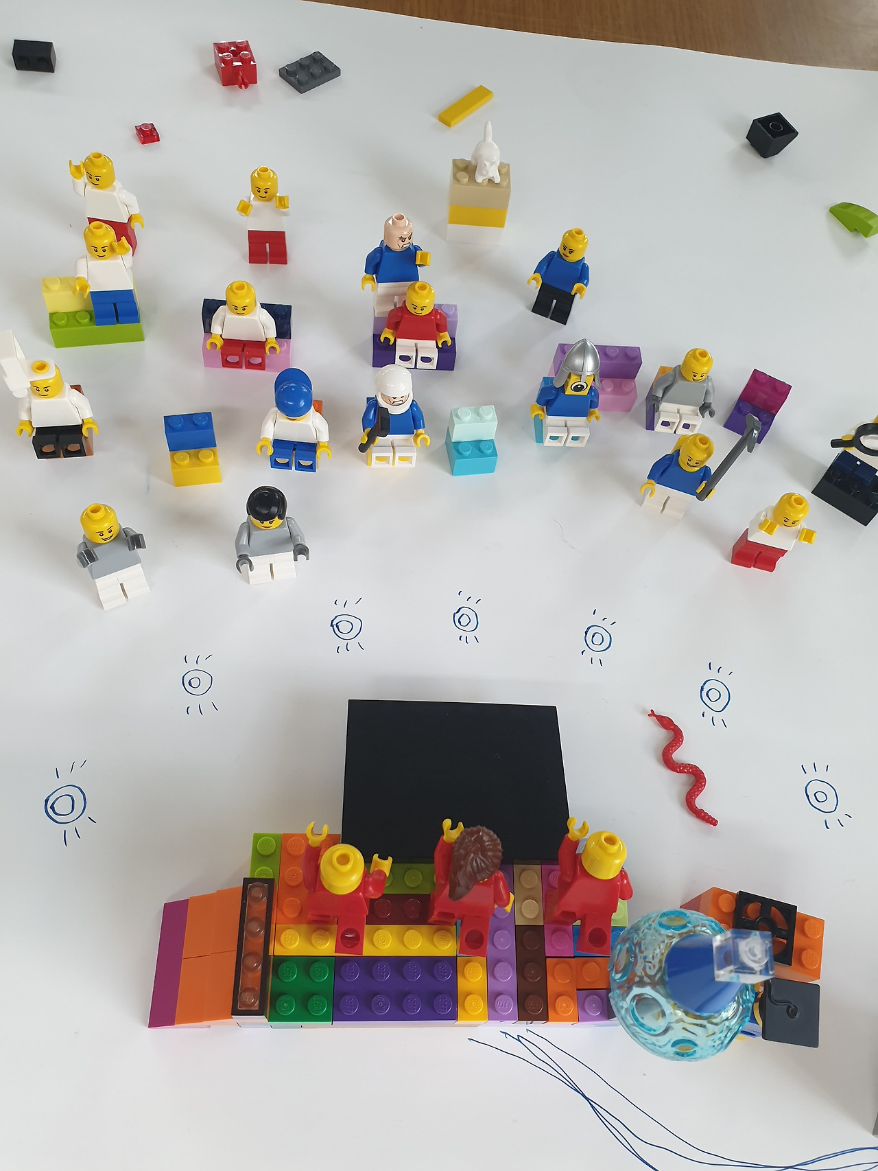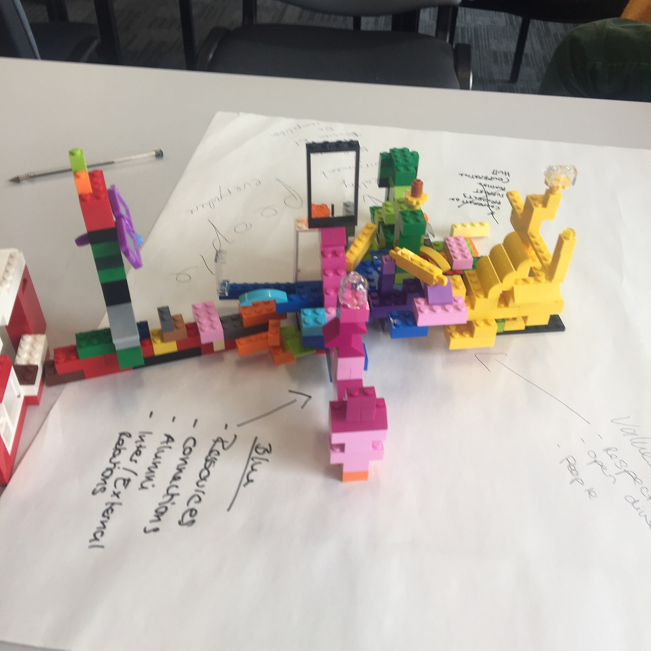 레고 워크숍은 아트 경연대회가 아니다. 중요한 점은 잘 만들었다가 아니라, 뭘 표현하려고 했는지, 어떤 생각을 꺼내려고 했는지, 레고로 만들기 전과 후에 생각이 어떻게 변화했는지를 파악하도록 도움을 주는 퍼실리테이션이 필요하다.