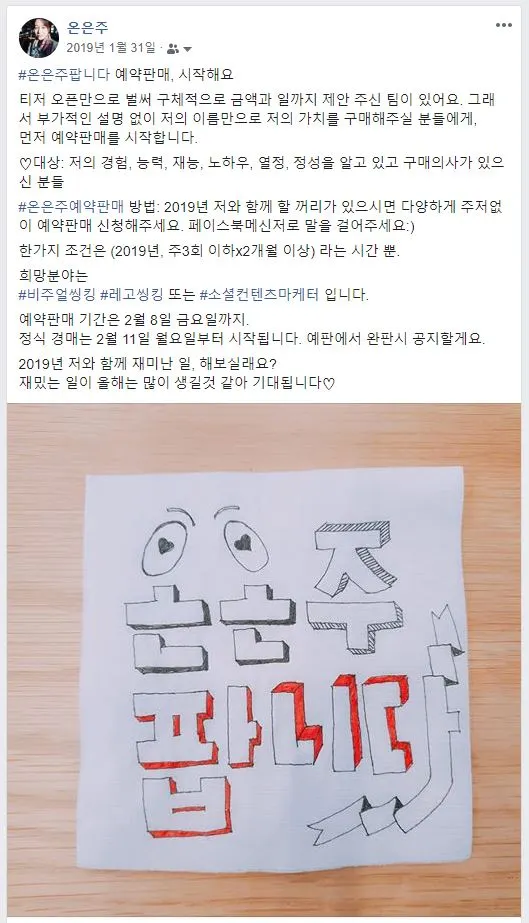 냅킨에 손글씨로 그림 그리고, 내용만 간략하게 정리해서 올렸었다. (2019년 1월 31일)