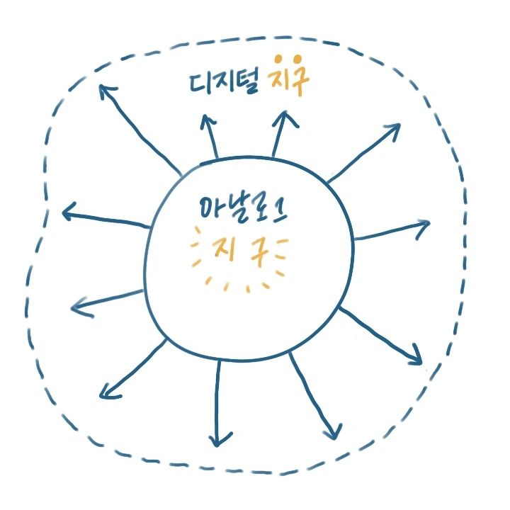 아날로그 지구에 생겨난 디지털 지구가 현재의 모습을 갖추게 된 건 지난 20여 년의 시간이 있었어요.
