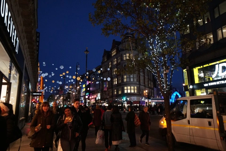가로수는 가지마다 빼곡하게 매달린 별들을 자랑했고, 건물은 과감하게 보라색 조명을 밝혀 주목을 끌었다. 간판은 황금색으로 번쩍였다.