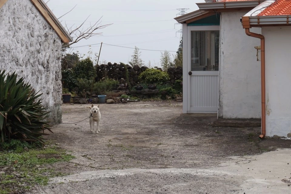 개가 짖길래 인사를 했더니 꼬리를 흔들더라. 똑똑하니 예뻐서 조금 더 눈을 맞추고 떠났다.