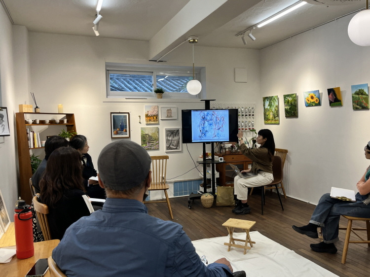 이날 진행된 크로키는 데생과는 조금 다릅니다. 속사화(速寫畵)라고도 하는데요. 그리려는 대상의 특징과 자연스러운 모습 등을 관찰해 빠르게 표현하는 스케치 기법입니다. 크로키를 하면 관찰력과 구조에 대한 이해력이 좋아지는데 숙련되면 간결한 선으로도 풍부한 매력을 표현할 수 있어요. 크로키에 대한 설명과 다양한 예시 그림을 보며 어떤 그림을 그리게 될지 선생님들의 설명으로 본격적인 이벤트 데이가 시작됐습니다.