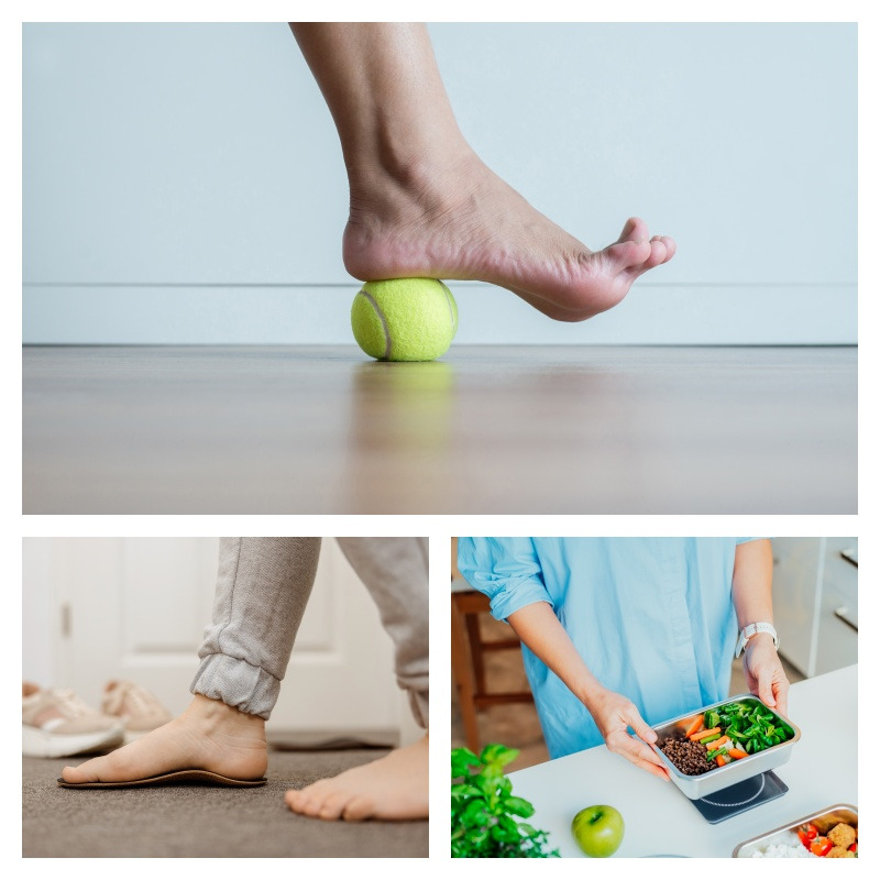 발바닥을 공이나 얼린 생수병을 이용해 앞뒤로 약 3분 정도 굴려주면서 스트레칭과 마사지를 동시에 해주면 좋습니다. 발을 앞쪽으로 쭉 뻗은 다음 수건으로 감싼 후 몸쪽으로 당기면서 스트레칭을 해주는 것도 좋은 예방법입니다.