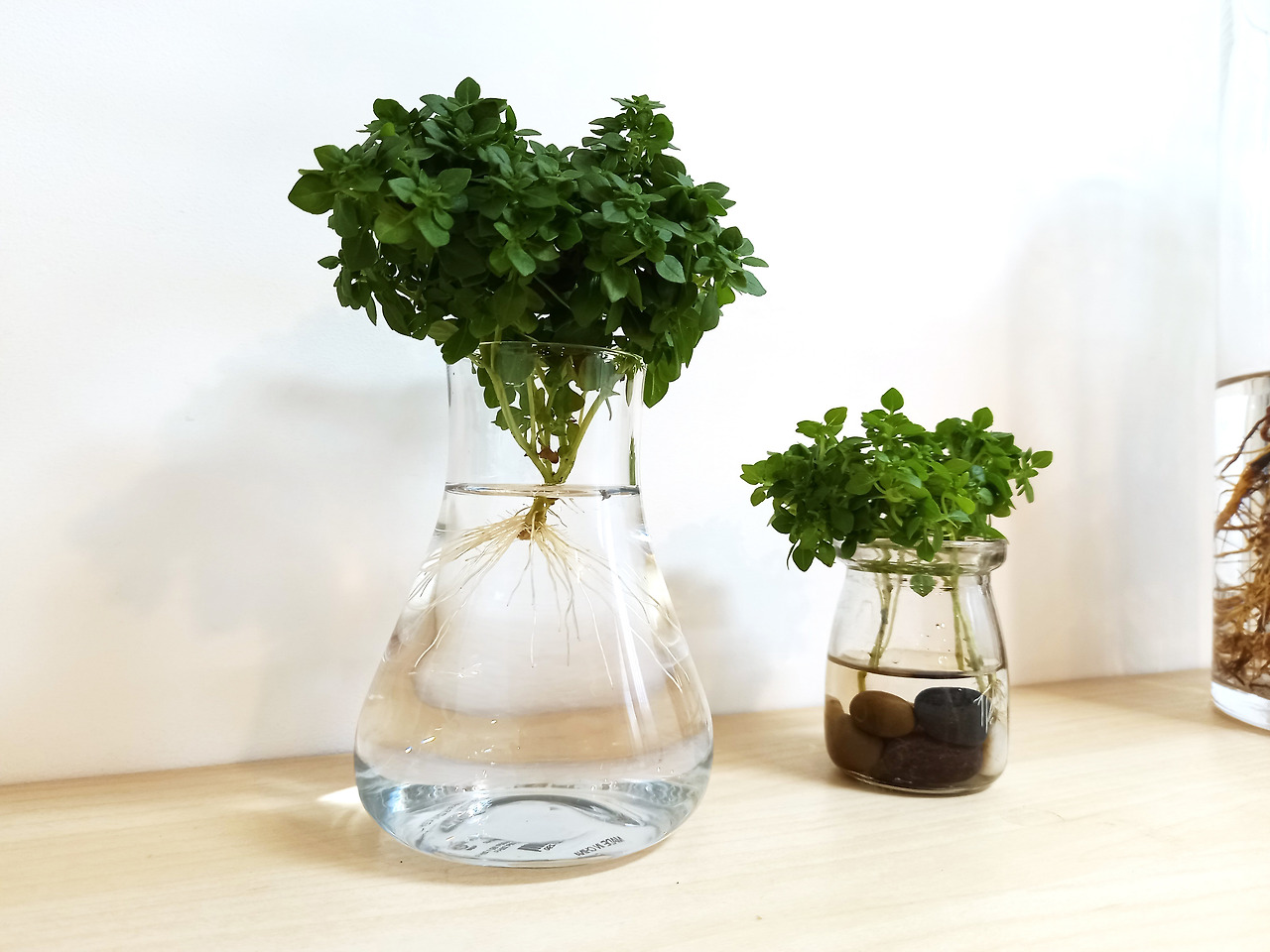 허브 물 주기가 어렵다면 수경재배를 시도해 보는 것을 추천한다. 특히 가지치기한 허브 몇 줄기를 물에 꽂아보면 놀라울 정도로 잘 자라니 한 번 시도해 보자. 부엌에 작은 창이 있다면 수경재배 허브로 나만의 키친 가든을 만들어보는 것도 좋겠다.