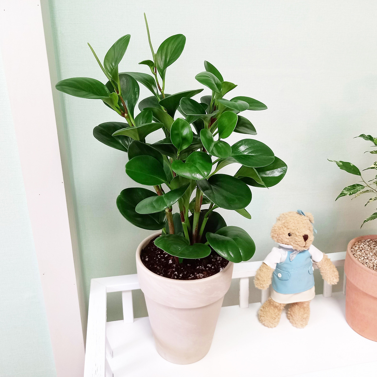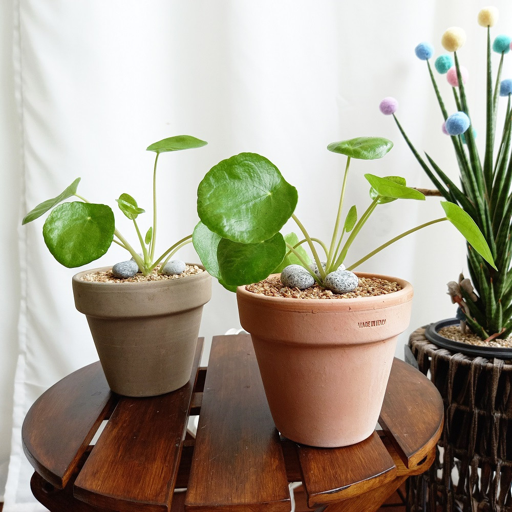 필레아페페는 중국 남부 원산으로 히말라야 산맥 아래 자생한다고 해요. 화분에 동전을 묻어두면 부자가 된다는 말이 있죠. 가운데에서 새로운 잎이 퐁퐁 올라오는데 하엽을 톡톡 따주며 키우면 목대를 키울 수 있어 키우는 재미가 가득해요. 화분의 방향을 조금씩 돌려가며 키우면 예쁜 수형을 만들 수 있죠.