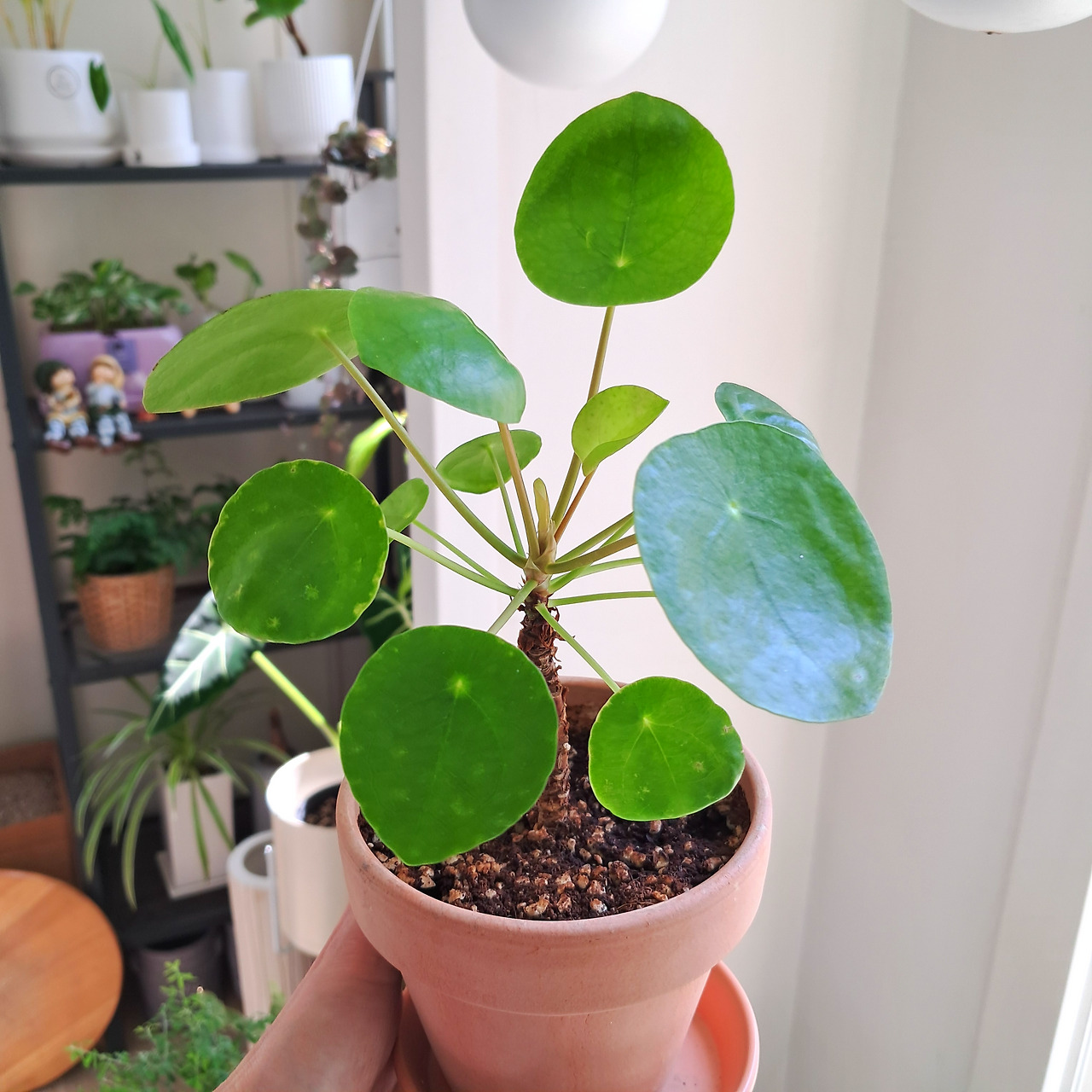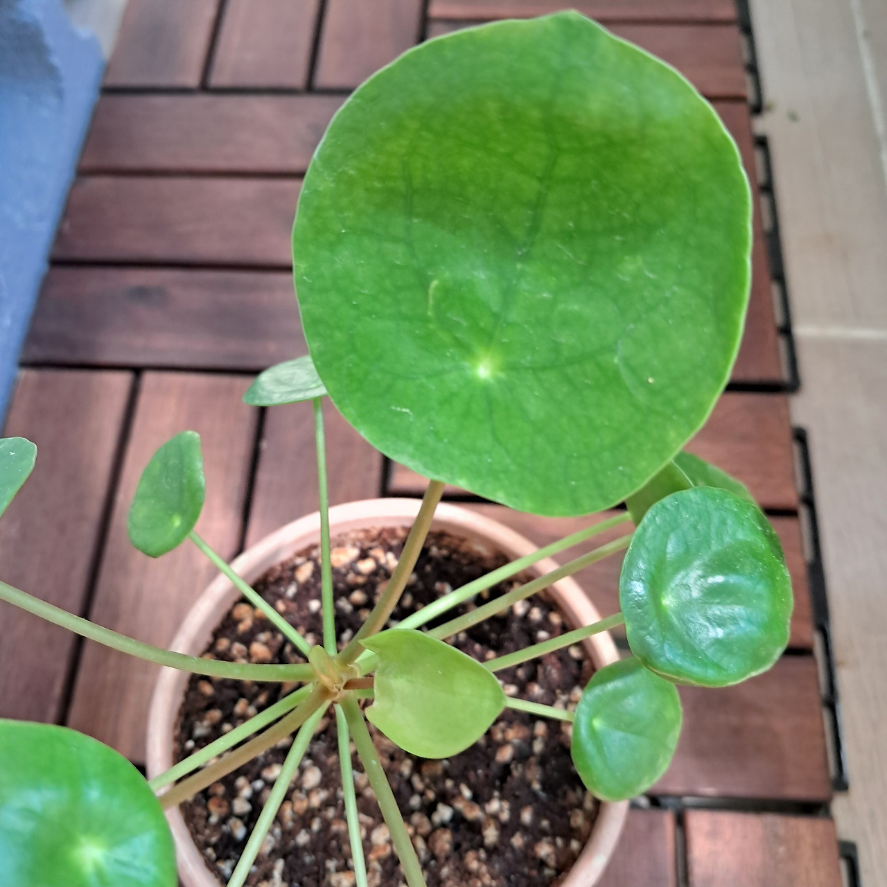 필레아페페를 방에서 키우다 베란다 다른 식물들 주변으로 옮기니 잎이 2배는 커지고 새잎이 계속 올라오더라고요. 또, 이 아이는 환경변화에 아주 민감하므로 잘 자라고 있다면 한 장소를 고수하는 것이 좋답니다.