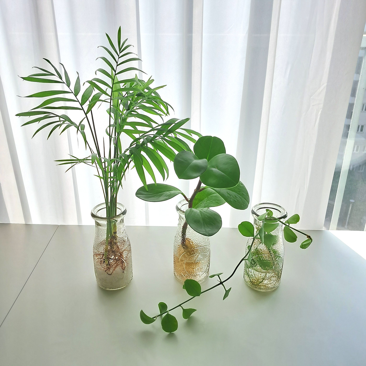 청페페는 수경으로도 아주 잘 자라는데요, 줄기를 잘라 물에 꽂아두면 곧 뿌리가 내리고요, 기존에 흙에서도 키우던 아이를 뿌리를 씻어주고 물로 옮겨 키워도 잘 적응한답니다.