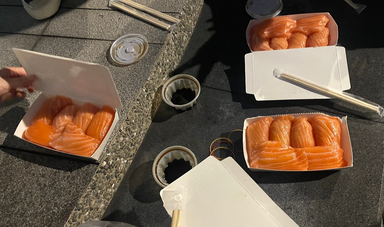 나는 배고픔에 절여진 뇌로 판단을 하기 시작했고 포장을 하겠노라 외쳤다. 근처에 공원이 있었기 때문이다. 당연히 포장주문은 기다리는 이들보다 더 빠르게 음식이 나왔다. 하지만 공원은 우리가 생각하는 공원은 아니었기에 먹을 수 있는 공간이 턱도 없었고(심지어 공사 중이었던 걸로 기억한다.) 우리는 연어초밥이 포장된 비닐을 들고 이 주변을 서성였다.