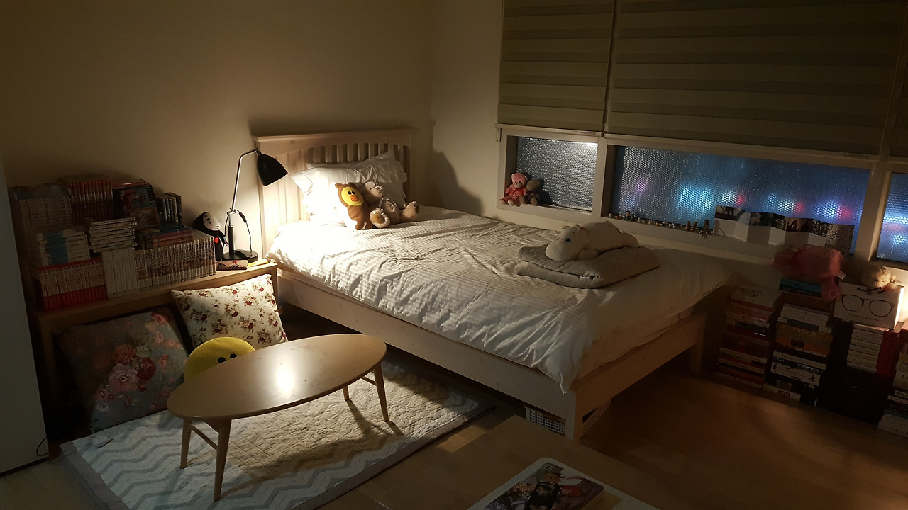 당장 집을 넓힐 수도 없고 둘이서 생활은 해야겠으니, 집에 있는 물건들을 치우기로 했다. 강제 미니멀라이프의 시작이었다. 방이 여러 개 있다면 각 방을 필요한 대로 꾸미면 되겠지만, 우리에게는 단 하나의 방뿐. 우리에게 주어진 이 좁은 공간을 최대한 활용해야 했다. 자는 시간에는 잠만 자고, 먹는 시간에는 먹기만. 나머지 시간에는 휴식을 취할 수 있도록 계획을 세웠다. 그렇게 우리의 미니멀라이프가 시작되었다.