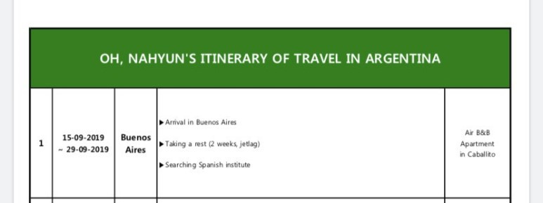 "TC(투어 컨덕터, 국외여행 인솔자)라서 출장으로 다녀왔어. 아르헨티나로 워홀 가면 더 이상 그 일 못해. 인천에서부터 그룹을 데려가서 현지 국가에 가이드들에게 인계해야 하거든."