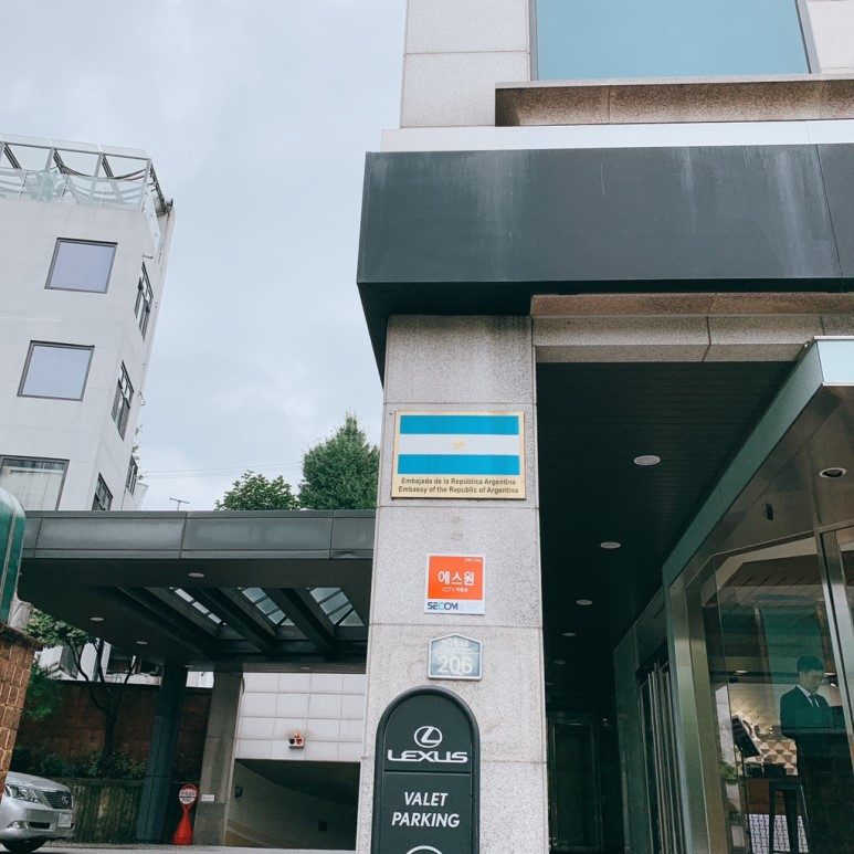 주한 아르헨티나 대사관은 6호선 녹사평역 1번 출구 쪽에 위치해 있다. 네이버 지도를 보면 2번 출구에서 더 가까워 보이지만, 횡단보도가 없으니 꼭 1번 출구로 나와서 횡단보도를 건너가야 한다. 비자 인터뷰 시간은 오전 10시 반이었지만, 영사의 미팅이 늦어져서 약 1시간을 기다린 후, 인터뷰를 하였다. 먼저 한국인 직원분에게 서류 원본을 제출하고 확인을 하는데 숙박증이 한국어인 데다가, 숙박시설 이름이 안 나와 있어서, 허탕 칠 뻔했다.