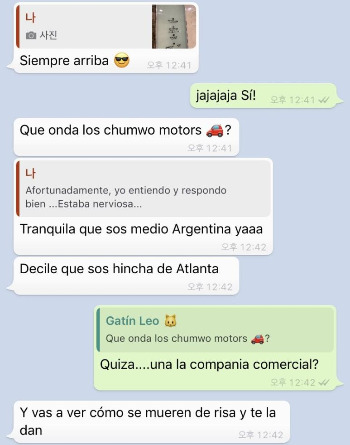 아르헨티나 친구 중 한 명인 Gatin(가띤, 한국어로 야옹이쯤 되겠다)이 인터뷰 어떻게 됐냐고 물어서,