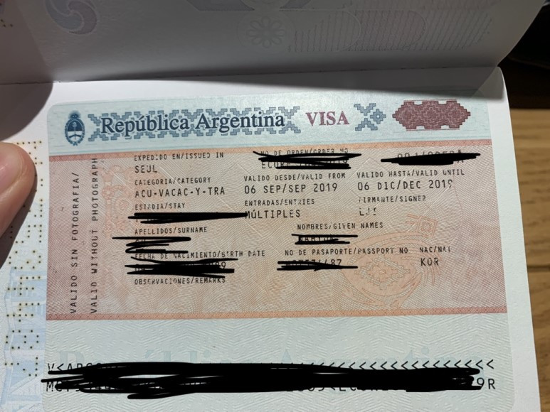 비자가 7개월만 나왔다. 뭐 어때. 아래 적힌 유효기간 06/sep/2019 ~ 06/dic/2019는 입국 유효 기간이란다. 저 날짜 안에만 들어가면 된다는 뜻이다. 한국인으로서 세 번째 아르헨티나 워킹홀리데이 참가자가 되었다. 출국 5일을 남겨두었다.