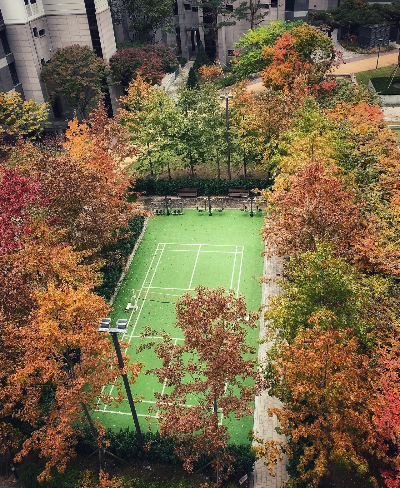 물론 내 거처는 아직도 도심 속의 아파트여서 25층, 30층의 건물이 나무들을 둘러싸고 있지만 위에서 쳐다보면 아기자기한 단풍들이 보이고, 아래로 내려오면 하늘로 건물과 어우러진 자연을 본다.