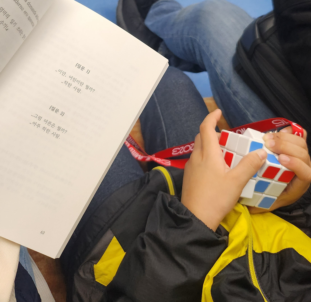 아이는 집에서도 색깔이 맞춰지지 않는 큐브를 “고장났다”고 표현했었는데, 모든 것이 균일하게 맞춰진, 색의 어긋남 없는 새 것 그대로의 상태인 큐브를 보고나서 어? 저도 이거 뭔지 알아요. 했다.
