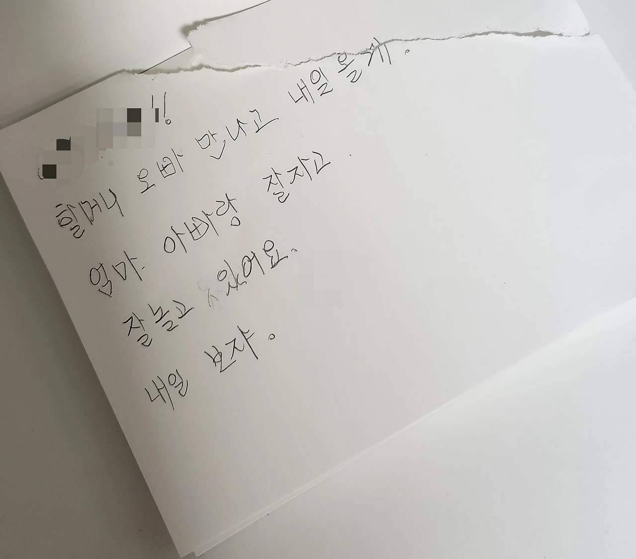 할머니가 오면 매일같이 일찍 하원한다는 걸 아는 손자는 아주 기특하게도 간드러진다. 애교를 부리고, 할머니 옆에서 떨어지려고 하질 않는다. 부치는 체력에 못 이겨 금세 짜증을 내는 엄마와 다르게, 할머니는 여유 있고, 같이 춤도 춰주고, 아침에 종이접기도 해 준다.
