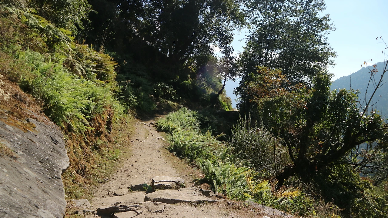 오늘 트래킹 길은 하늘에 맞닿은 히말라야 깊은 계곡을 따라 오르는 길이다. 계곡의 왼쪽 좁은 길을 따라 오르며 울창한 숲과 조그만 계곡들을 건너며 발걸음을 재촉한다. 걷다 보니 위험한 곳이 제법 있다. 어제까지의 풍경과는 확연하게 다르다. 높이가 높아질수록 기온은 차가워지고 나무들은 벌써 겨울을 채비를 마쳤다. 조금만 더 오르면 4000m 히말라야 수목한계선에 가까워진다. 좁은 계곡 사잇길을 신중히 걷다 보니 어디인지도 알 수 없고 먼저 오른 트래커들의 흔적을 찾는다.