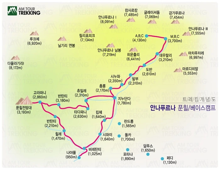 목적지 : 네팔 히말라야 안나푸르나 베이스캠프 (ABC) 4,130m