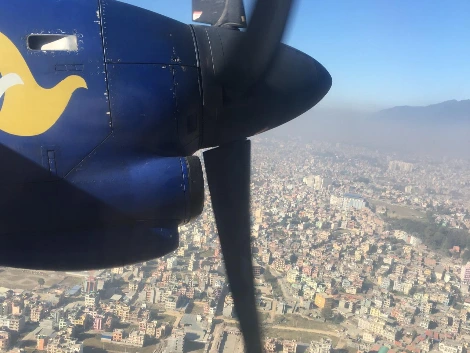 오전 9시 붓다항공 국내선 비행편으로 포카라로 향한다. 아침 먼지와 함께 날고 있다.