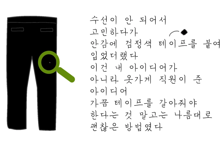 잘 입는 바지가 이거 하나인데 바지를 같이 잘라버렸네..?! 이걸 어쩐다????
