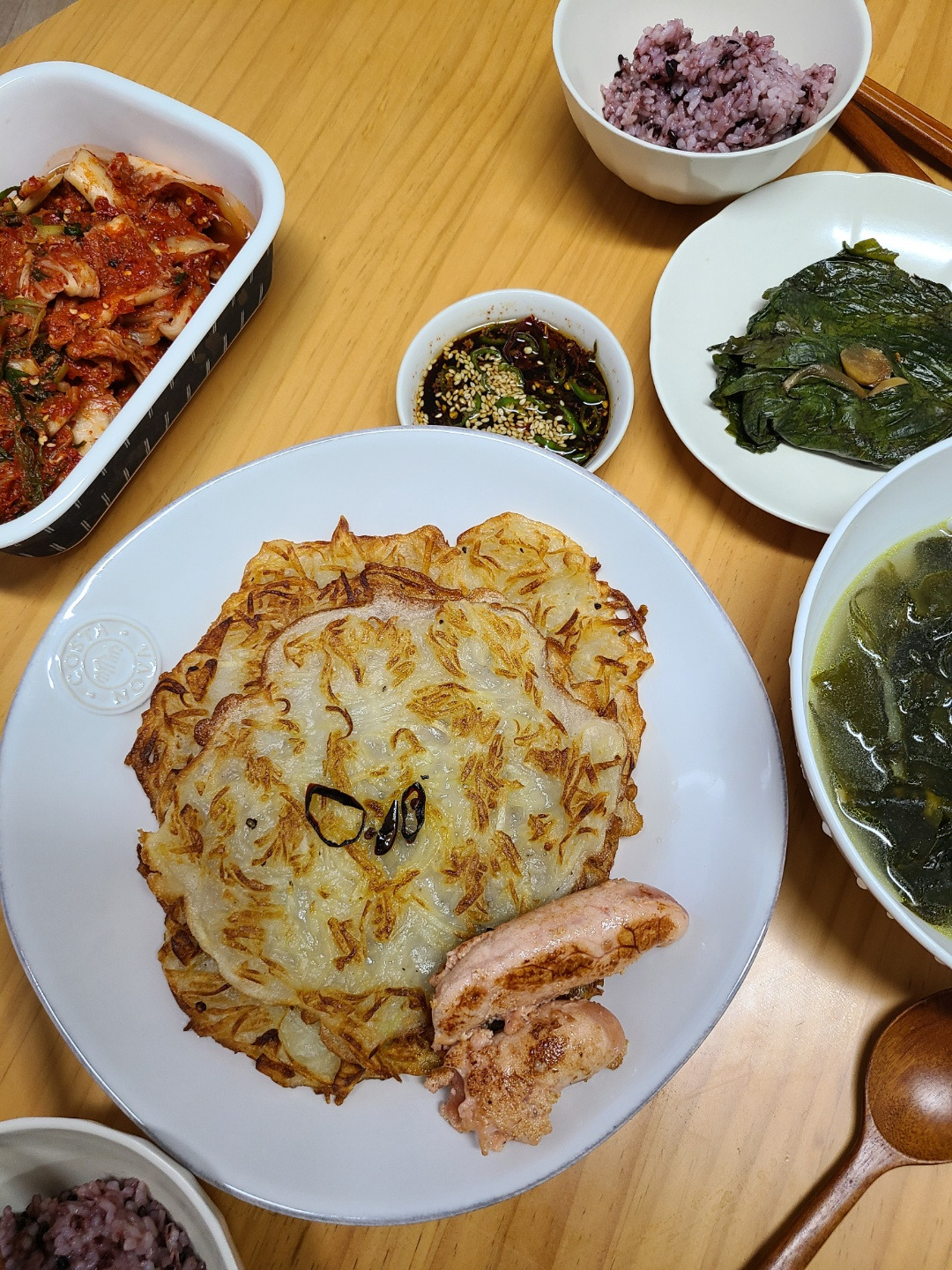 감자는 막상 사면 빨리 소진을 못하는 편이다.감자를 키위 채칼로 아주 잘게 채썰어서 감자전을 부쳤다.