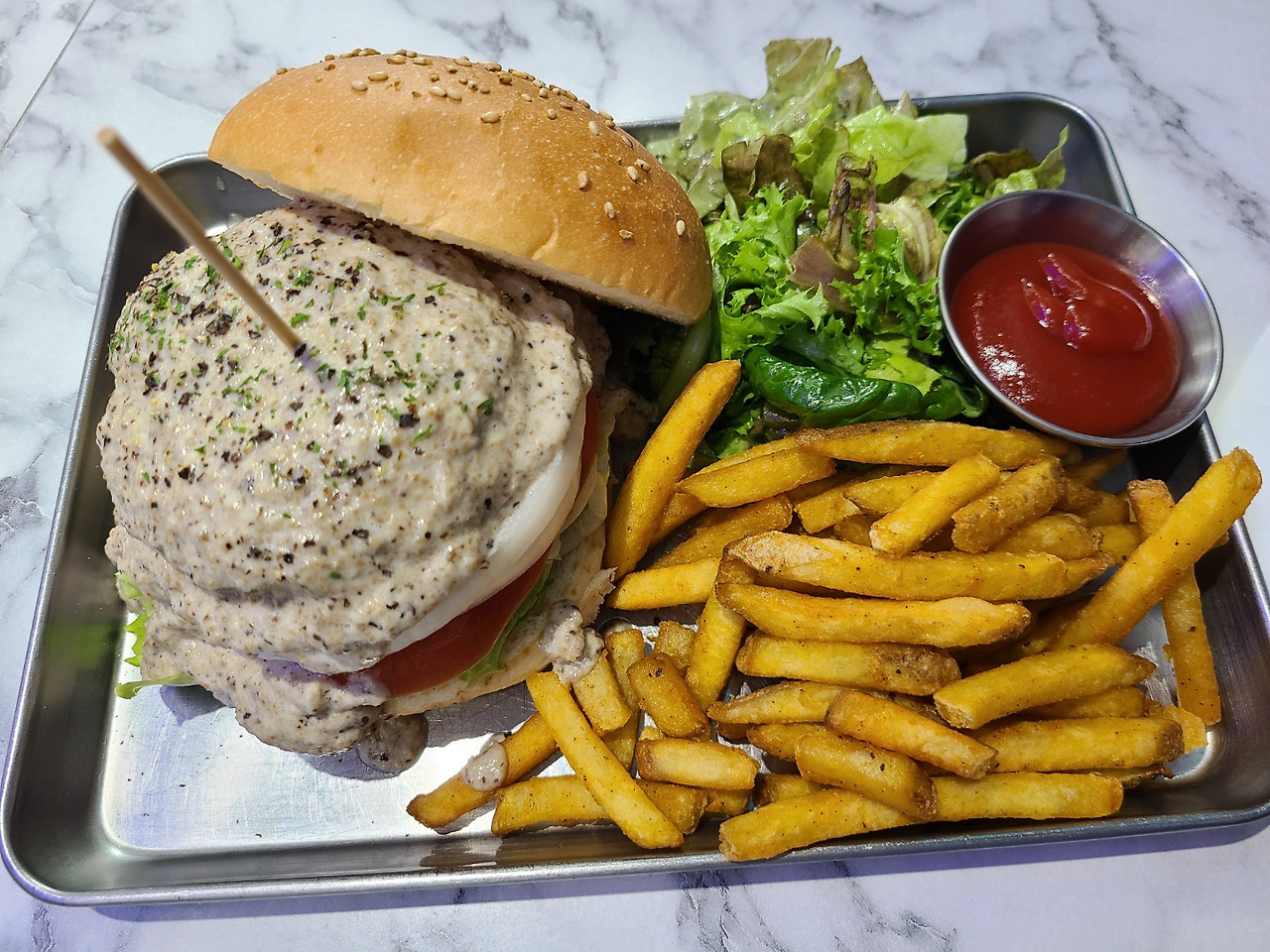 팀에서 식사를하면 아무래도 국밥 위주로...점심을 가게 되는 편이라 좀 다른 걸 먹고 싶어서 약속. 생긴 지 얼마 안 된 버거집으로 향했다. 음 여기는 사람들이 왜 안 가는지 알 것 같다. 이게 얼마짜리로 보이세요?
