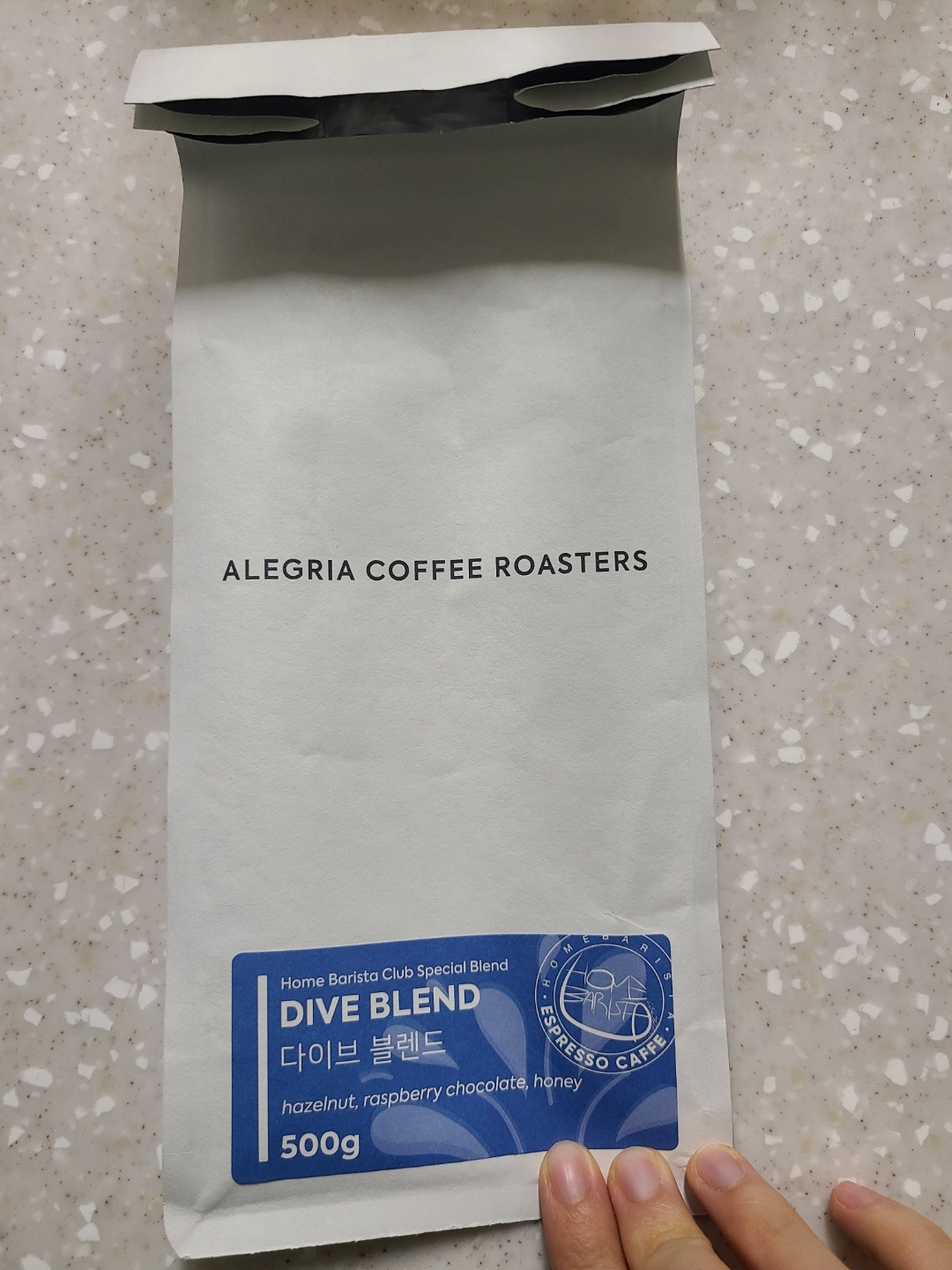 아침. J가 온라인으로 구매한 알레그리아 원두를 다 먹음.