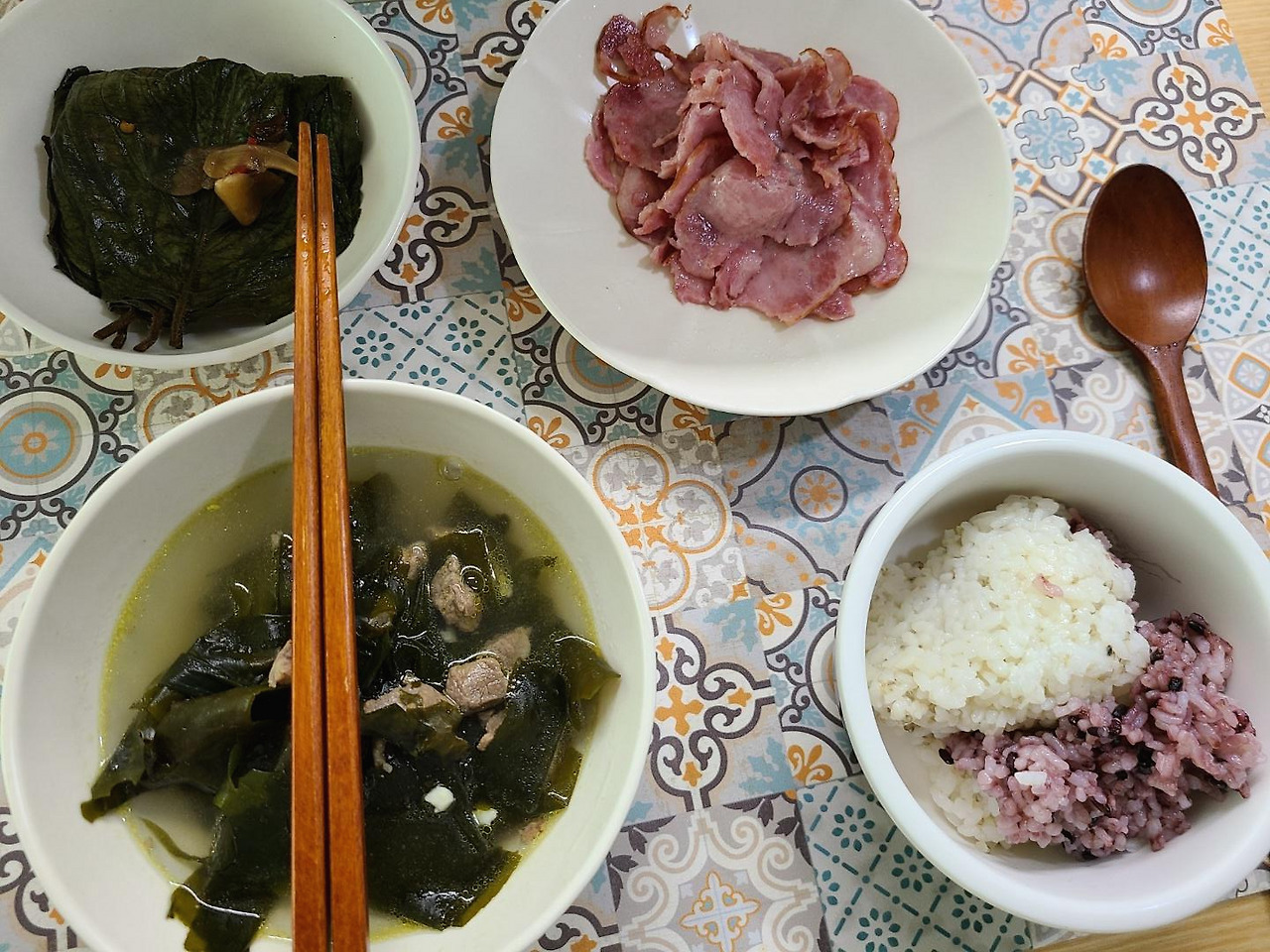 재택. 점심으로는 소고기미역국.