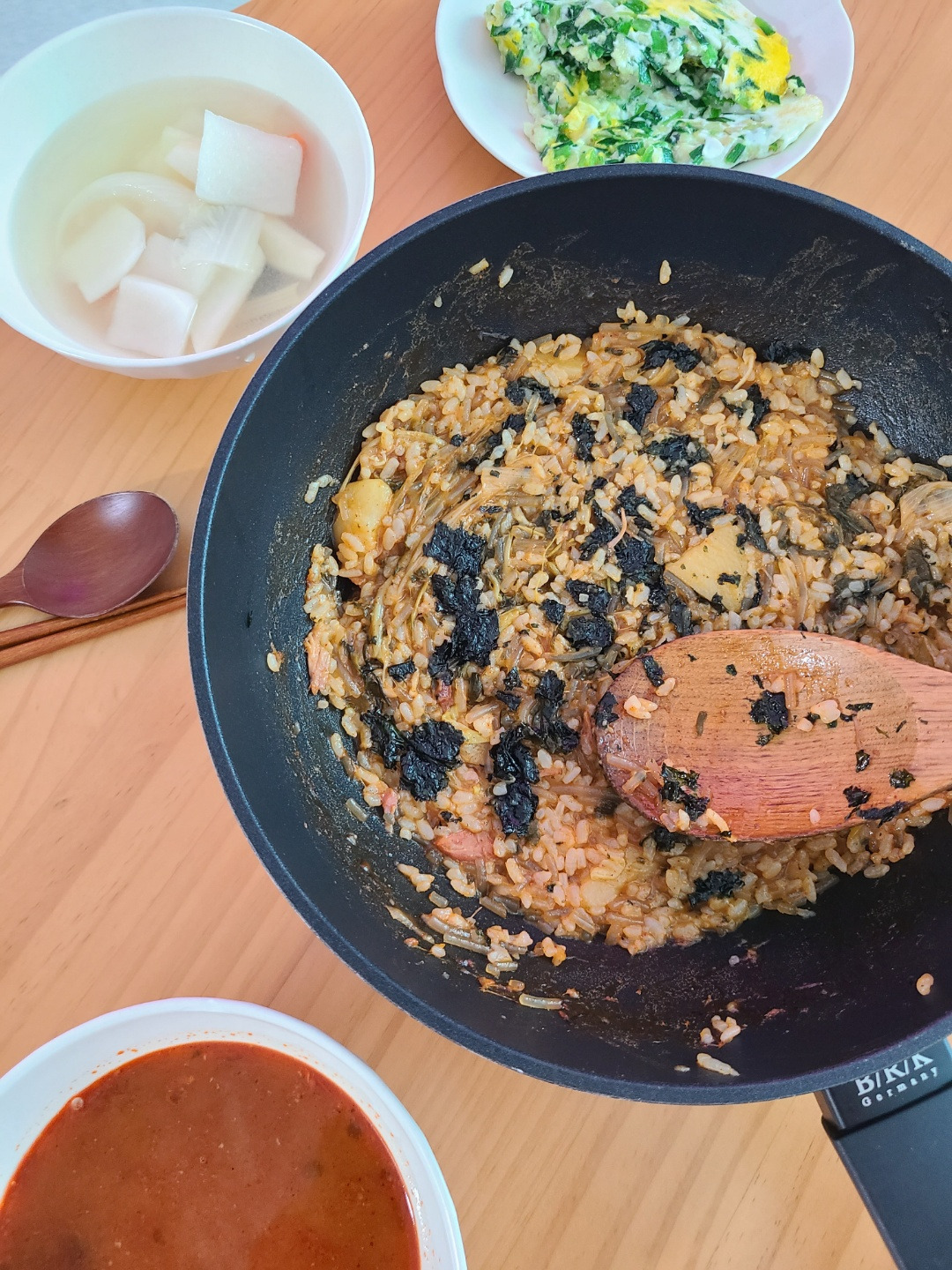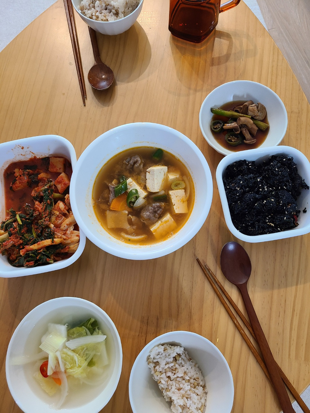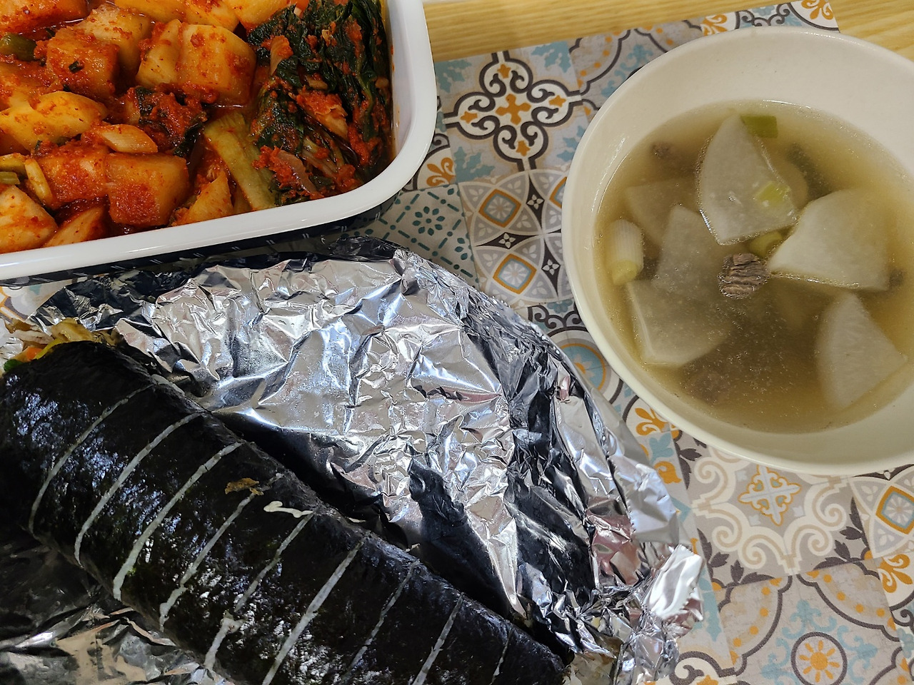재택해서 점심 혼자 먹은 사진인 줄 알았다가, 이 주에는 J가 바빠서 저녁을 몇 번 혼자 먹었었구나, 하고 기억해 냈다. 소고기무국을 한솥 끓여서 깍두기랑 저녁으로 먹었다.