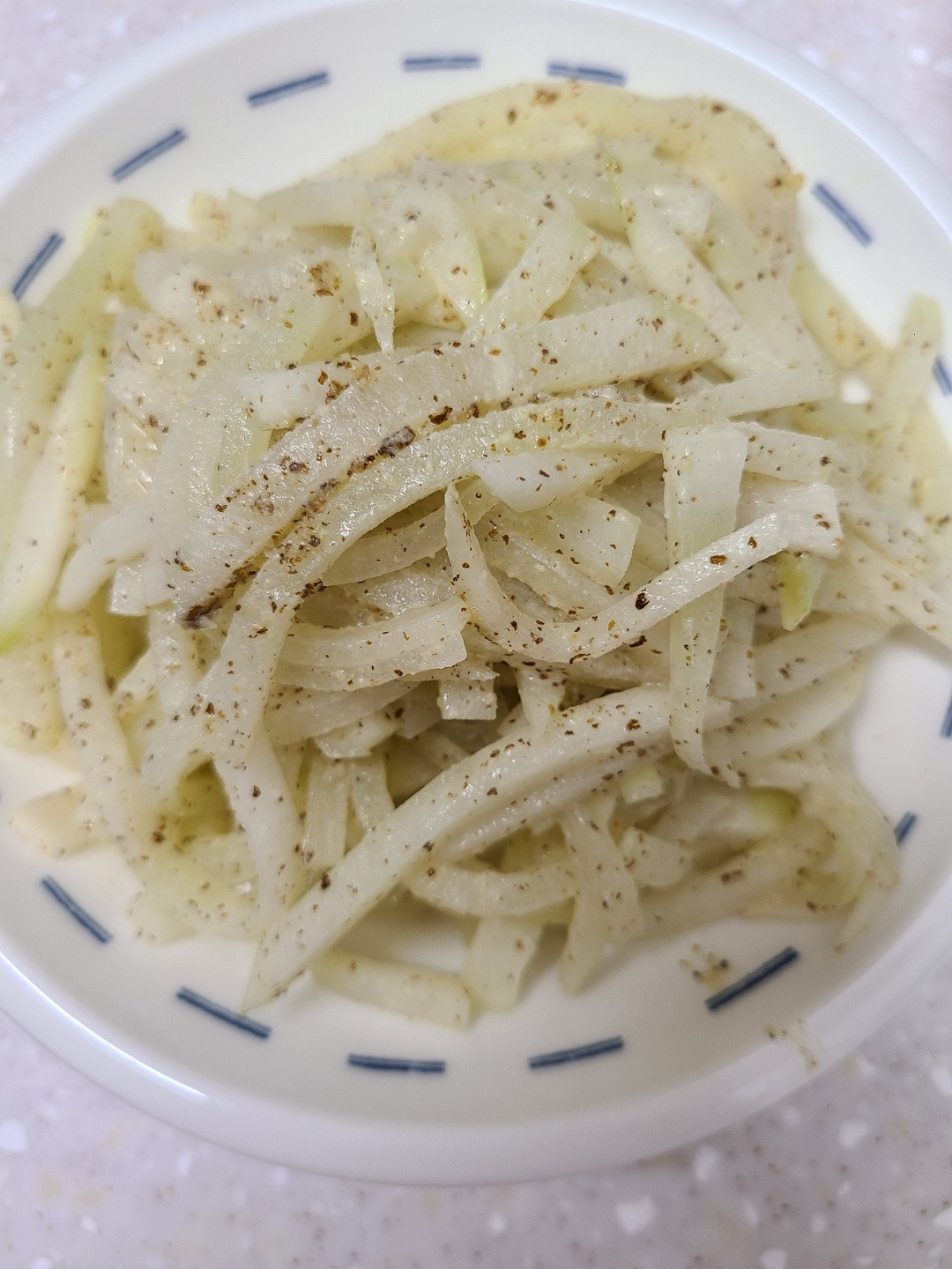 신혼 초에 키위채칼로 썬 무나물볶음을 한 적이 있는데, 그 때보다는 조금 칼로 두껍게 썰었다.
