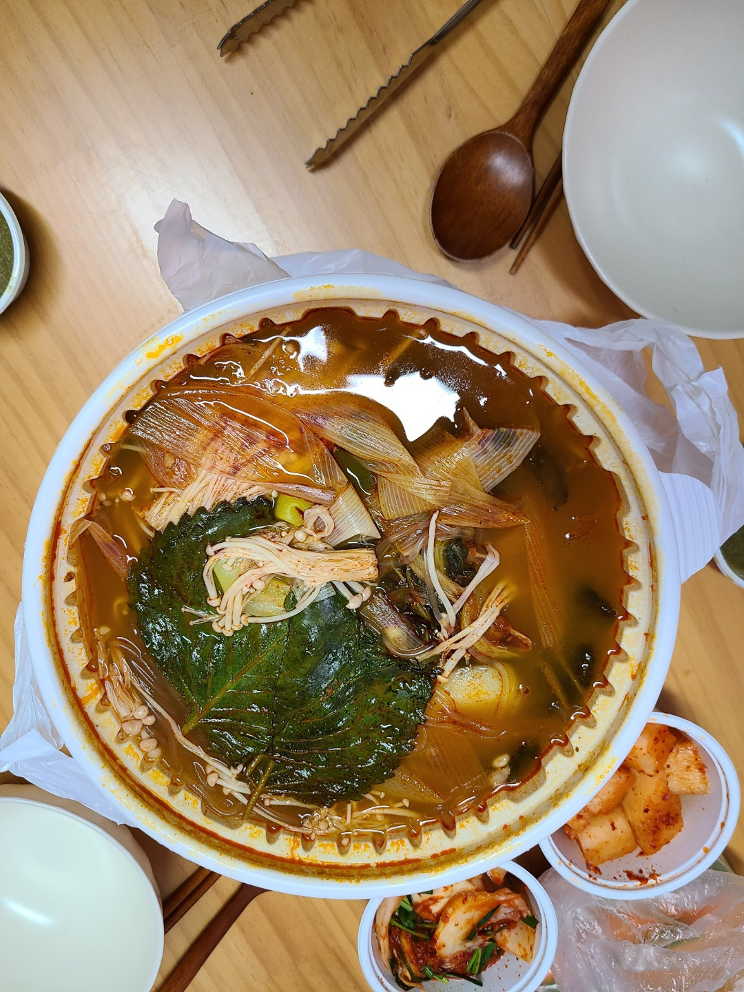 집근처 시장에서 김반찬이랑 백김치? 동치미? 를 사 왔는데 이렇게 가끔 시장 반찬을 사오면 너무 맛있다.