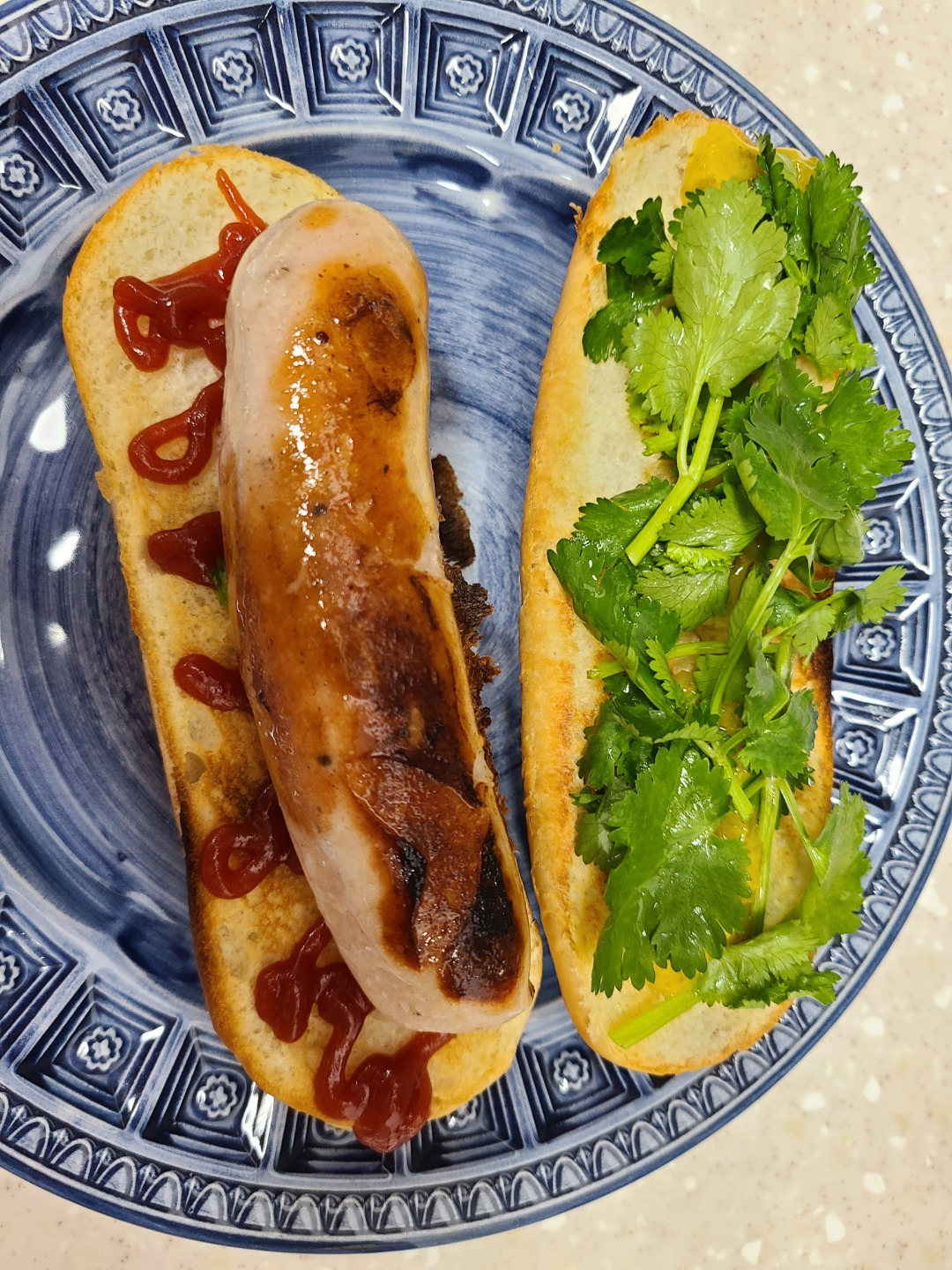 지난주 언젠가 같이 유튜브를 보다가, 어느 여행유튜버가 추운 극지방에서 핫도그를 먹길래 그게 또 그렇게 맛있어 보여서 따라함. 핫도그빵이랑 랠리쉬를 사고, 소세지를 하나 올리고, 아직 냉장고 안에서 생명력?을 유지하고 있던 고수를 잘라서 뿌려 줬다. 빵은 생각보다 쫄깃하지 않지만 맛있네...